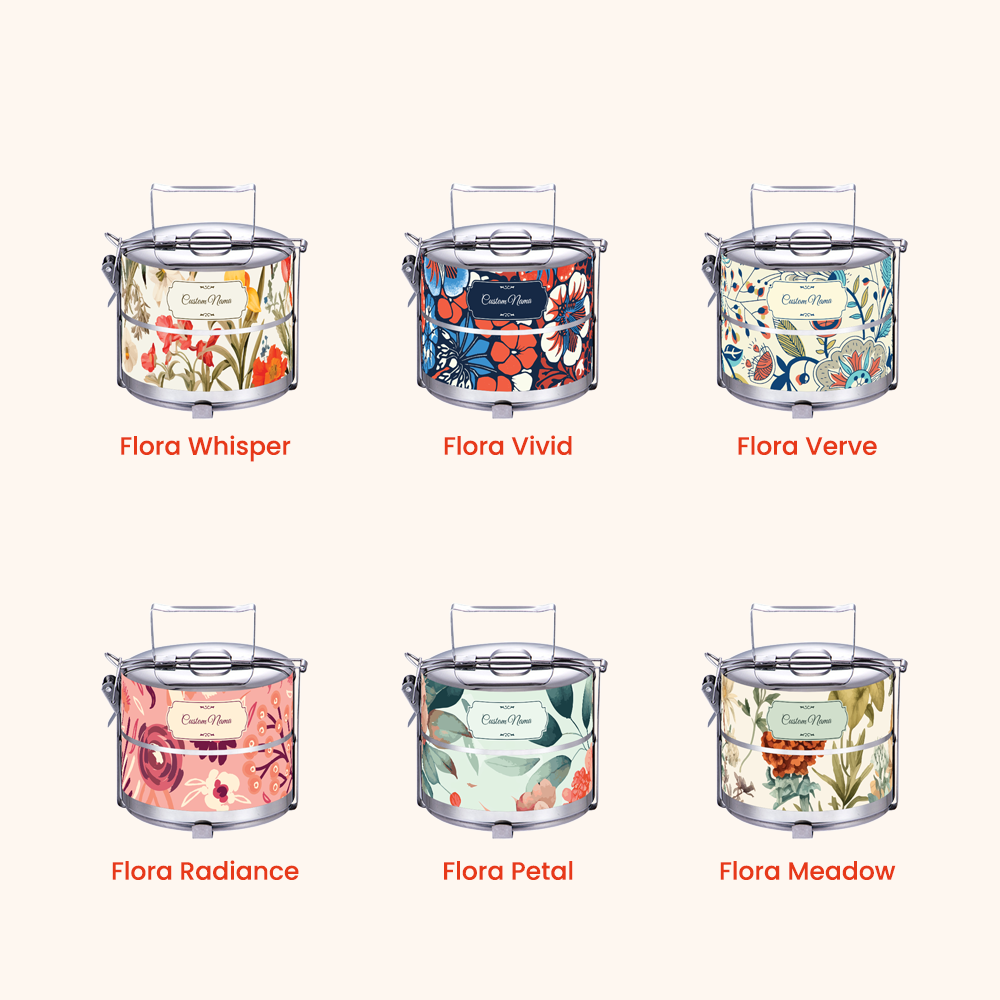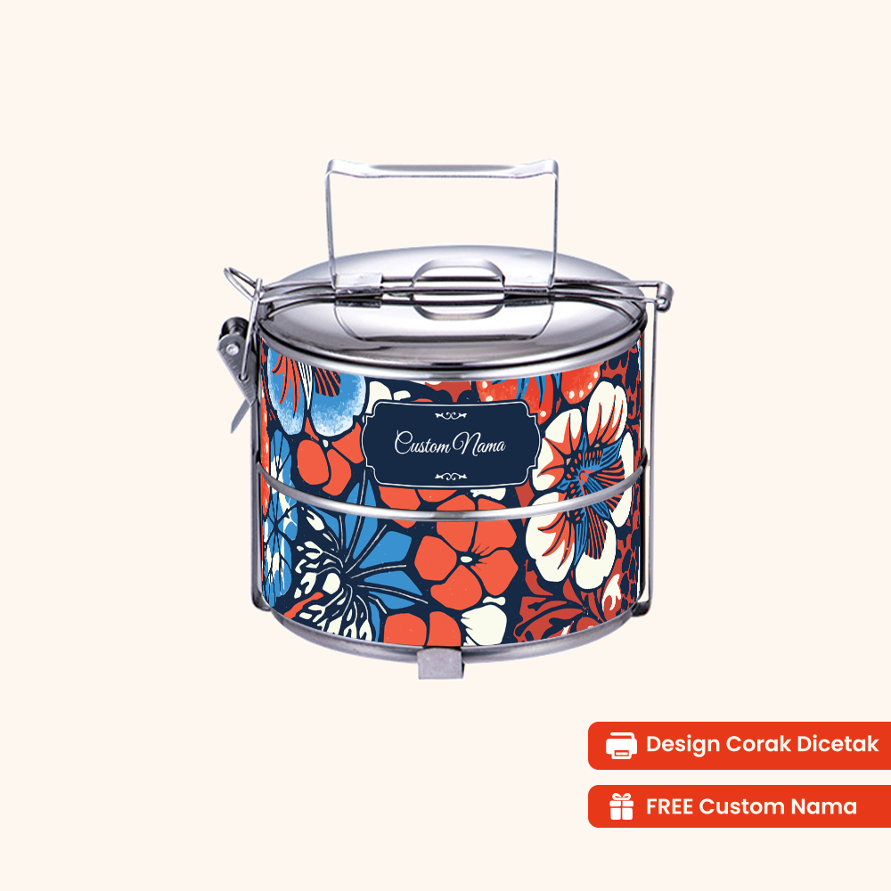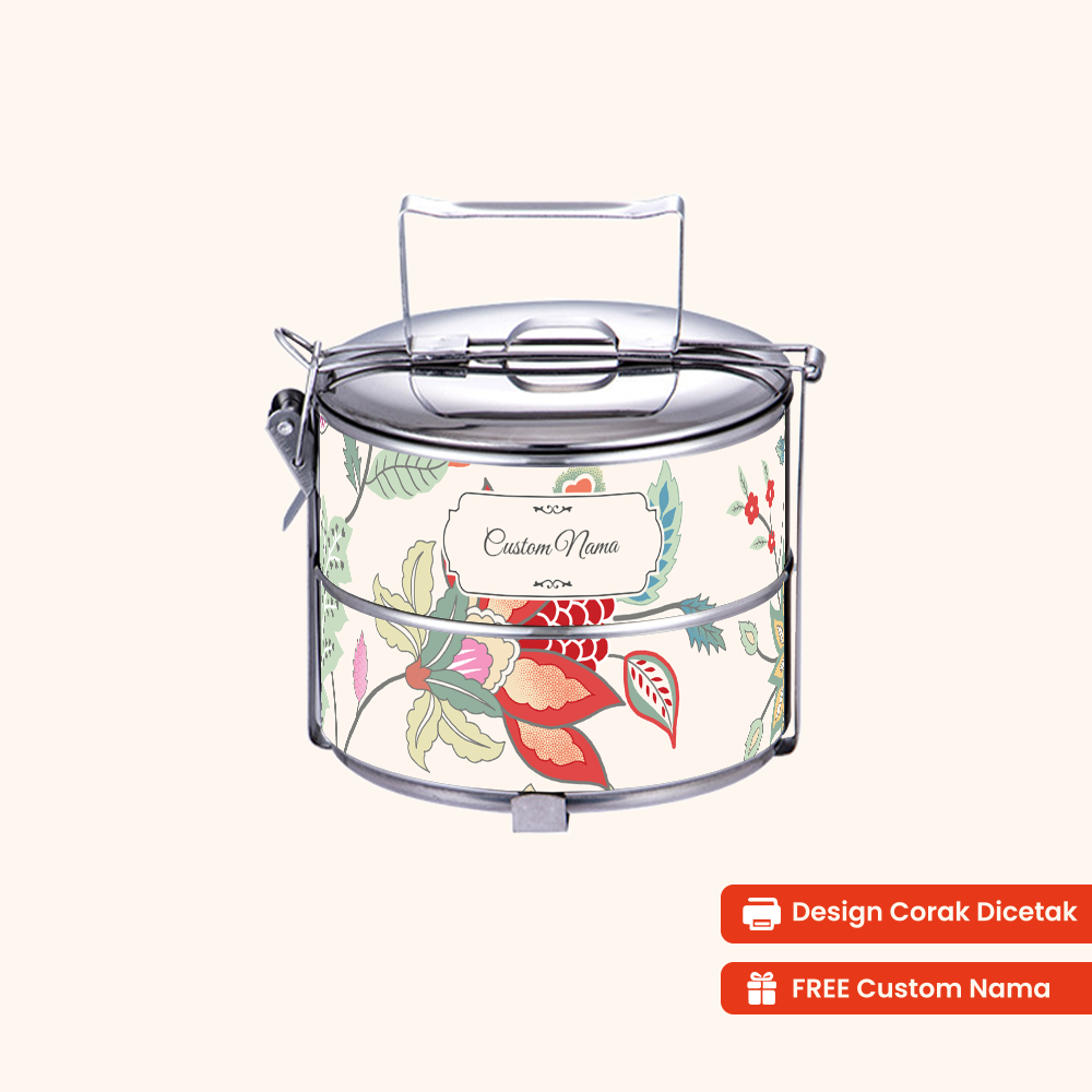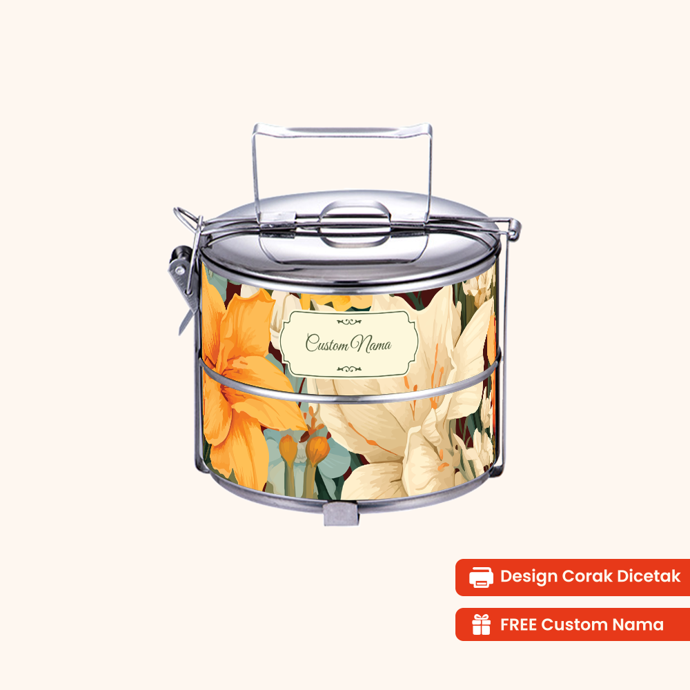 Corak Dicetak Terus (Not Sticker) 12cm 2-Tier Floral 03 Tiffin Carrier + FREE Custom Nama for Mangkuk Tingkat