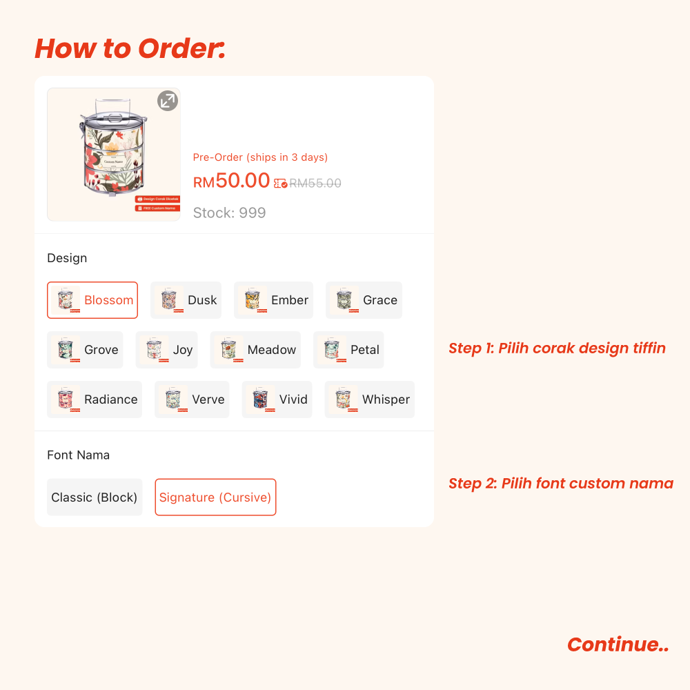 - Design mangkuk tingkat dicetak terus (bukan pelekat, bukan balutan) — tahan lama & berkualiti