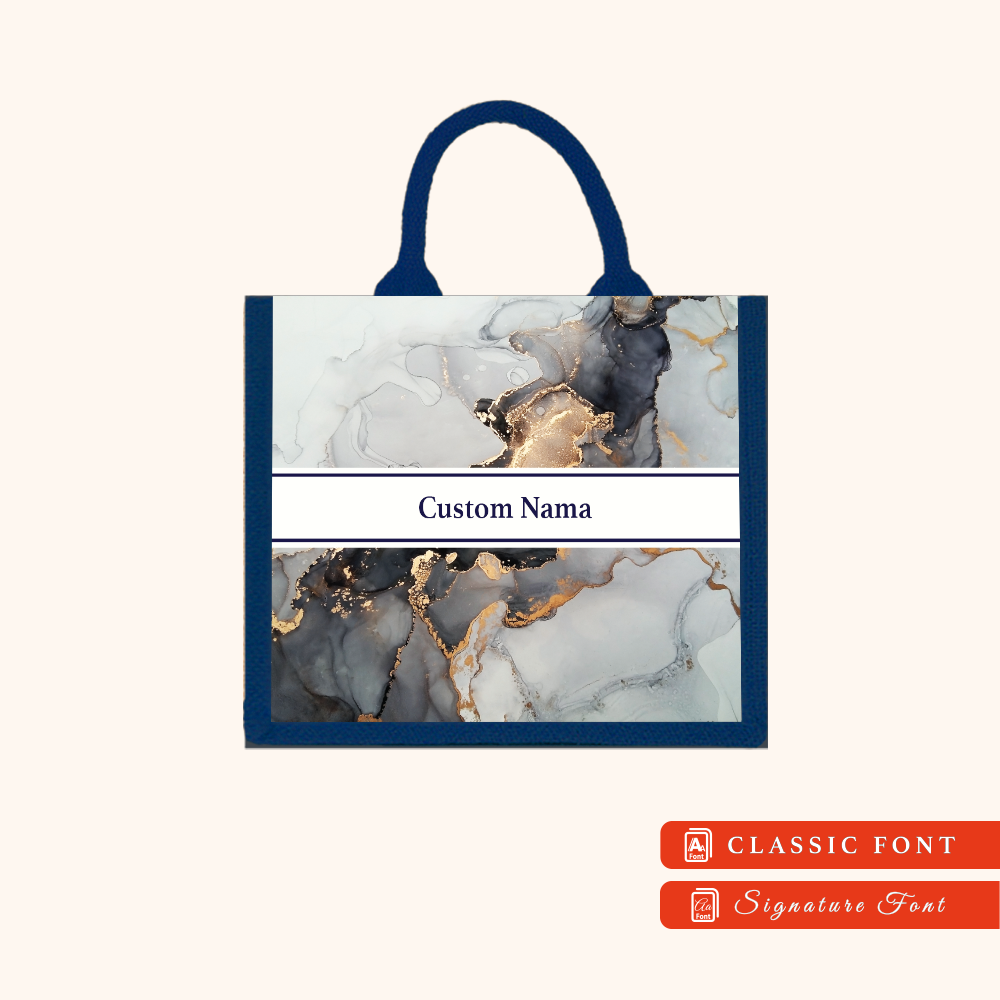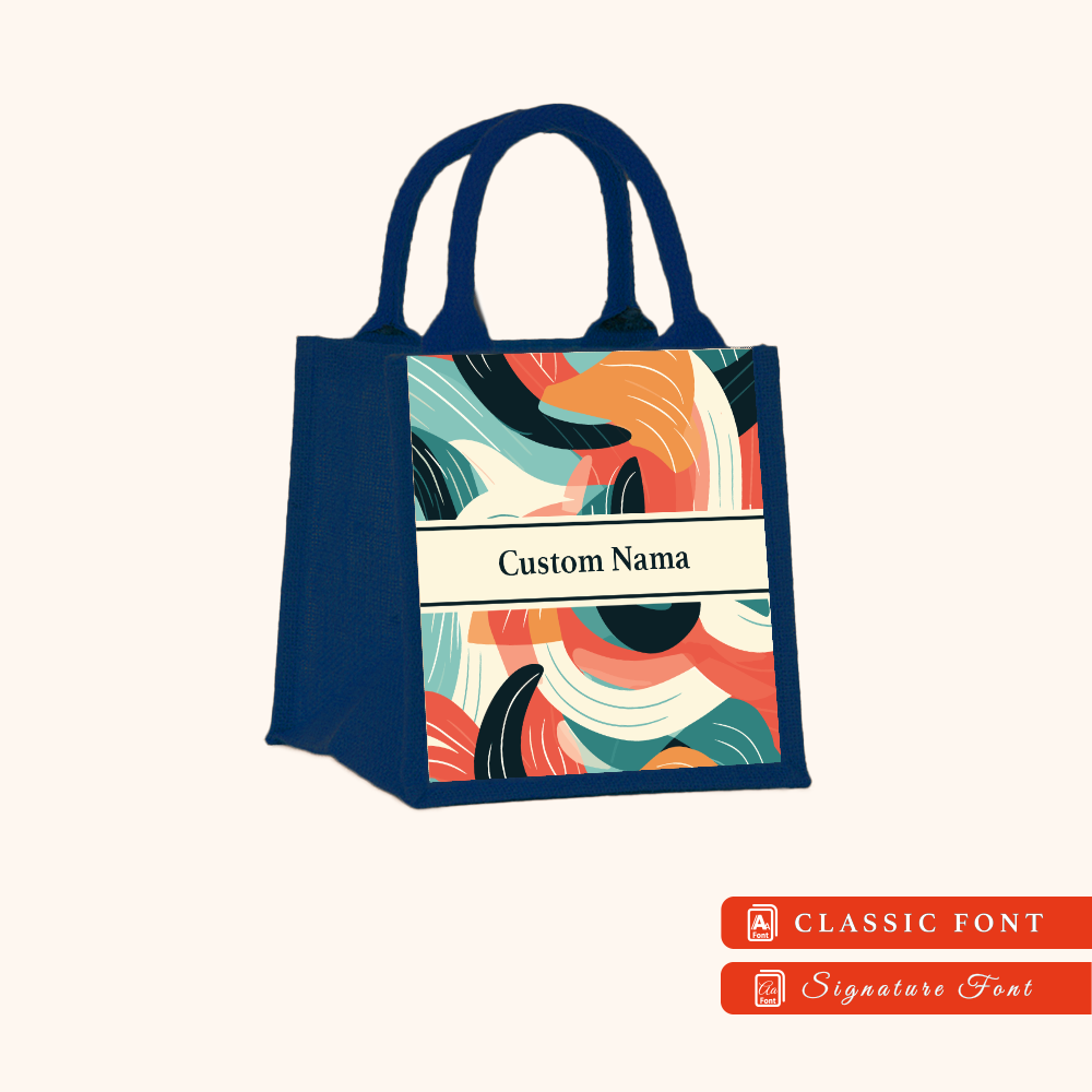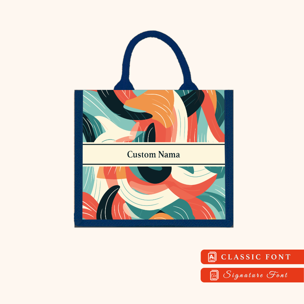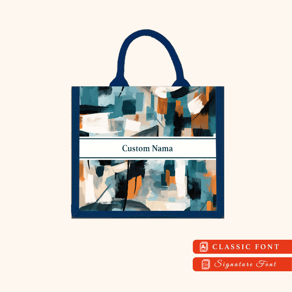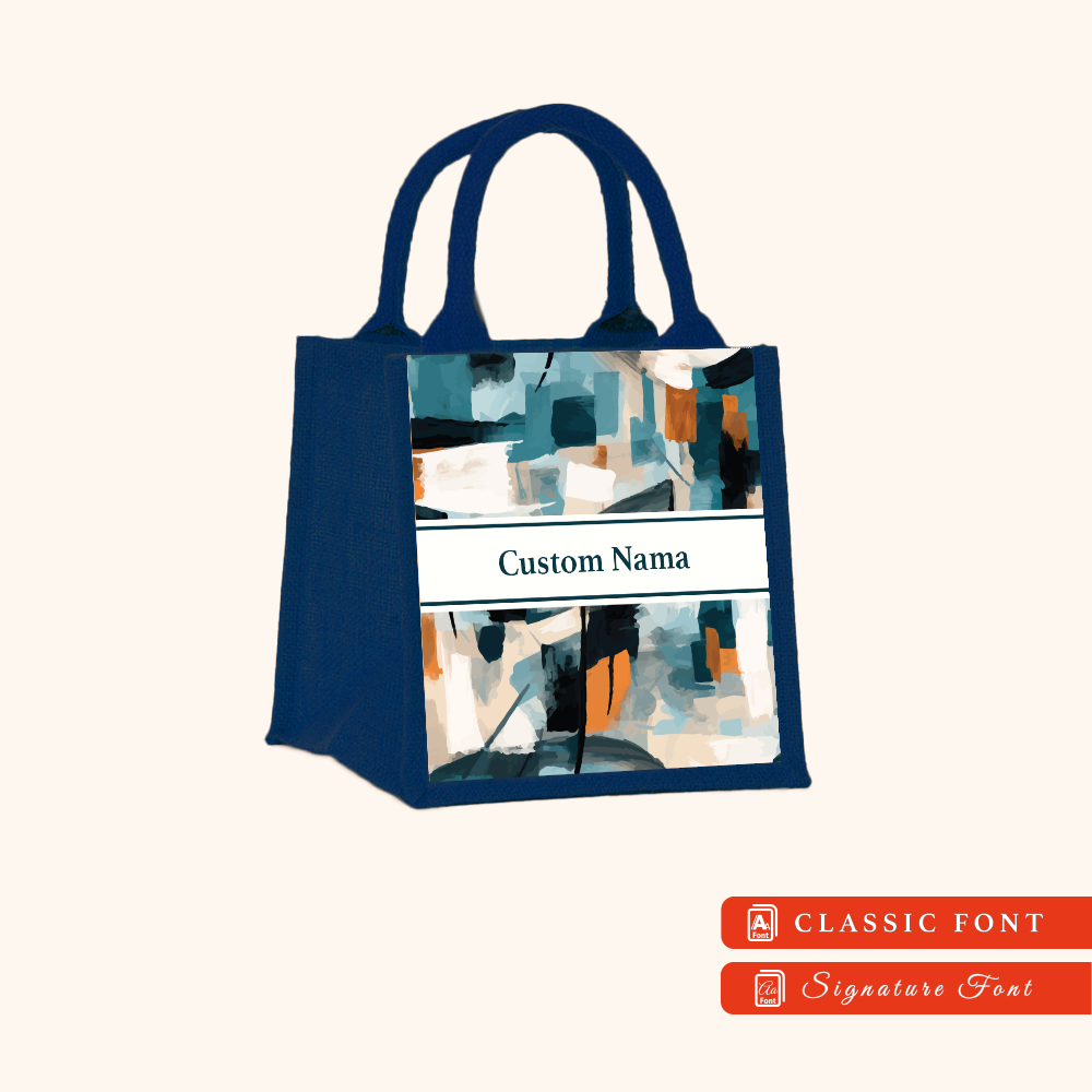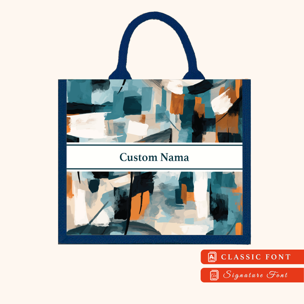 Abstract 01 Series Navy Blue Jute Tote Bag + FREE Custom Nama