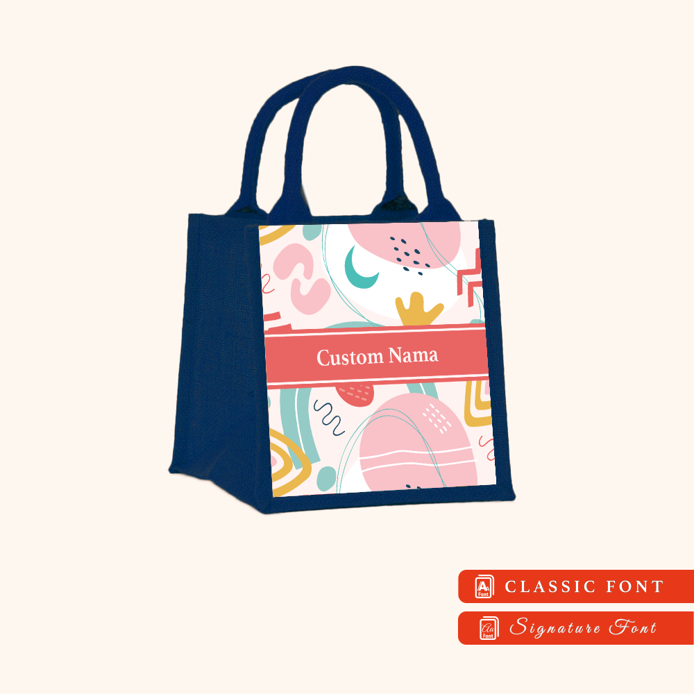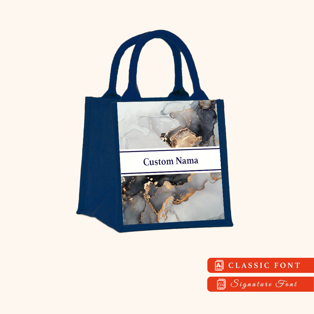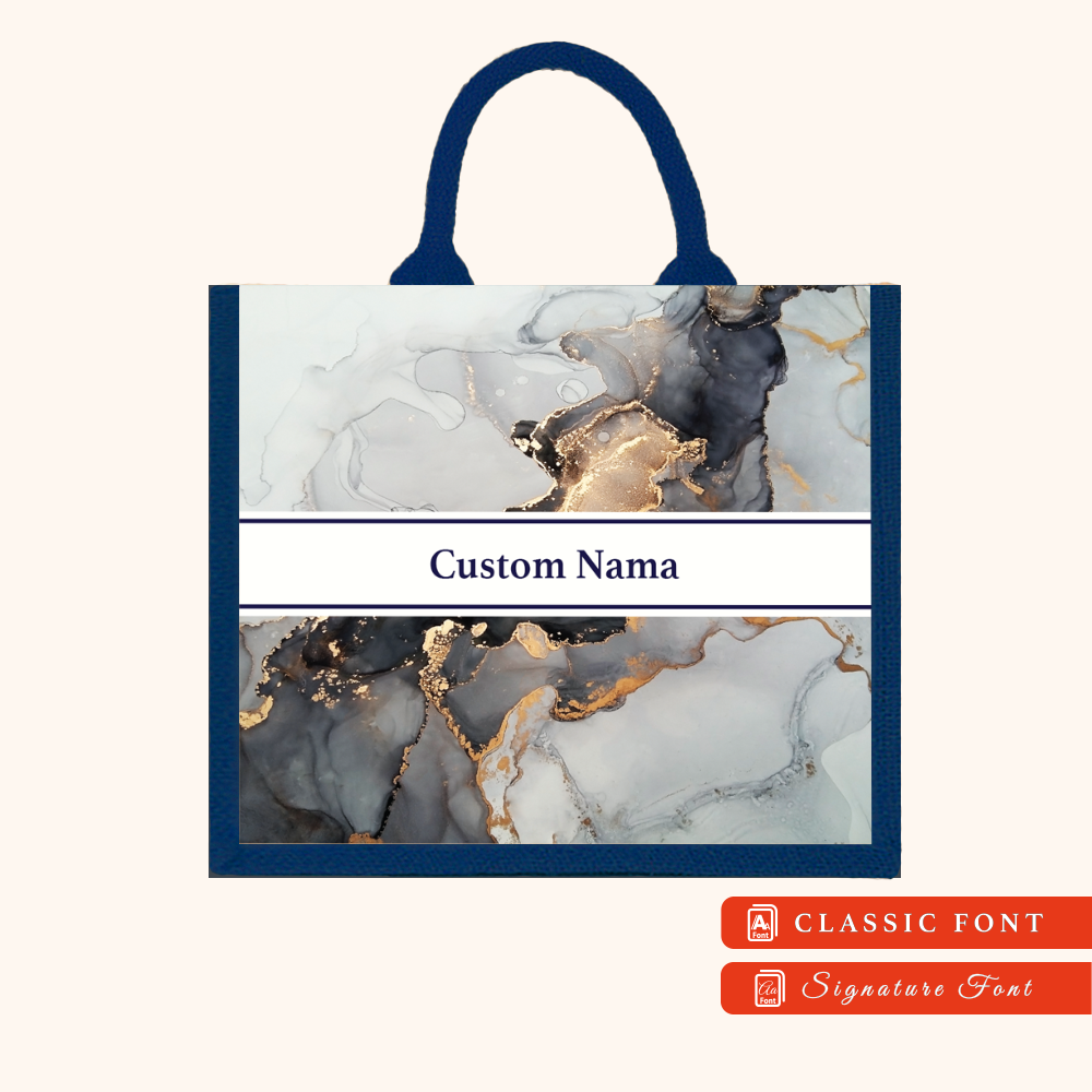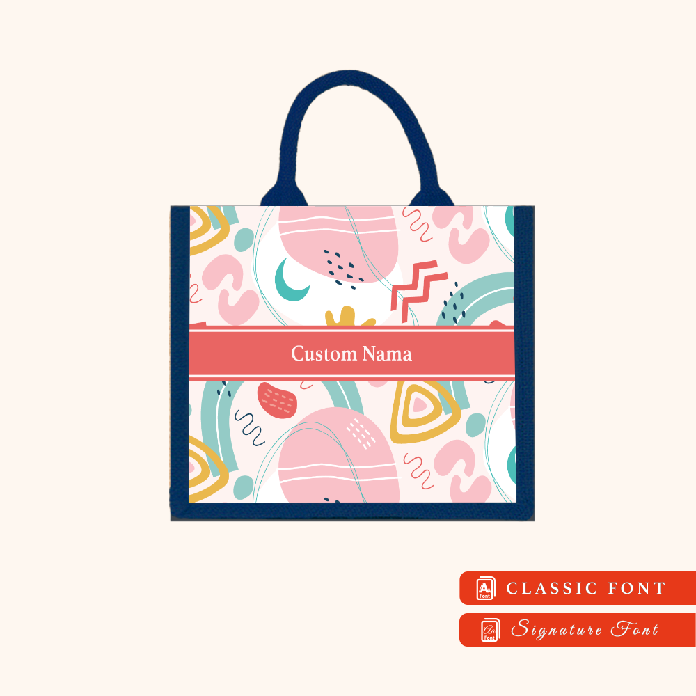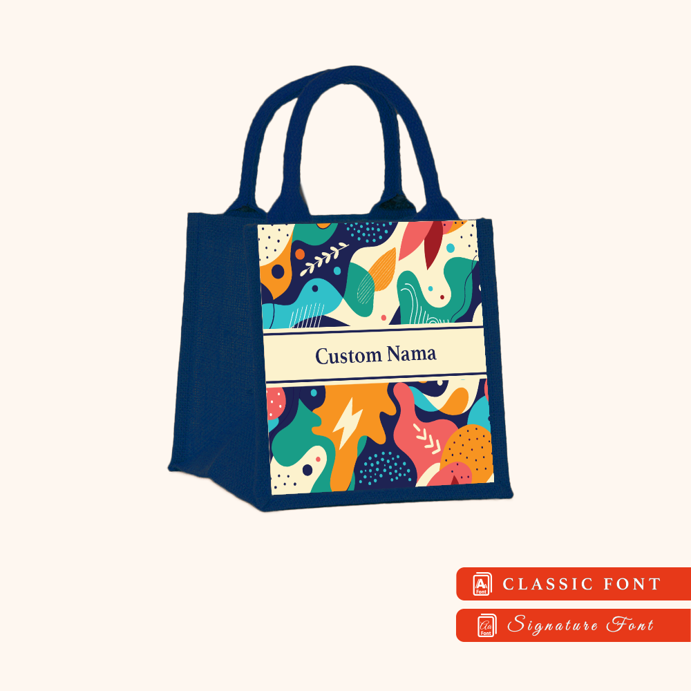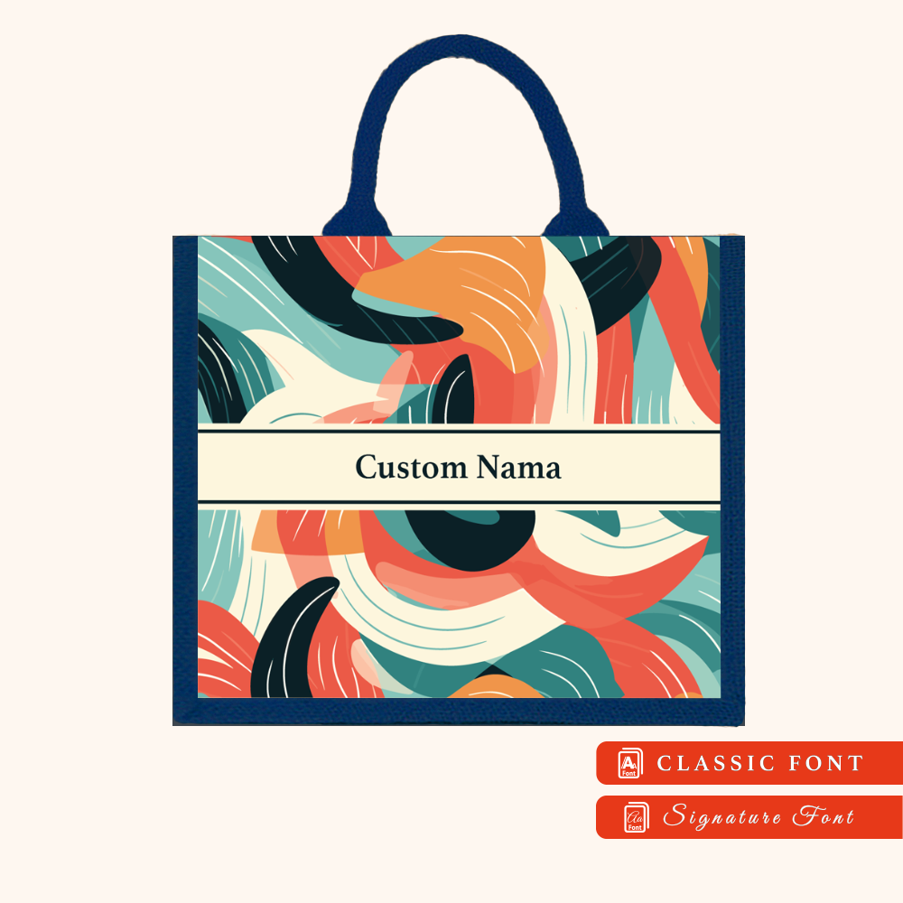 Abstract 01 Series Navy Blue Jute Tote Bag + FREE Custom Nama