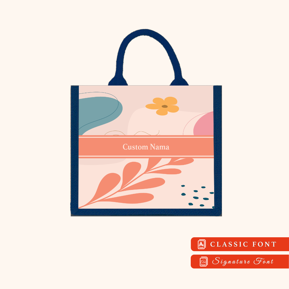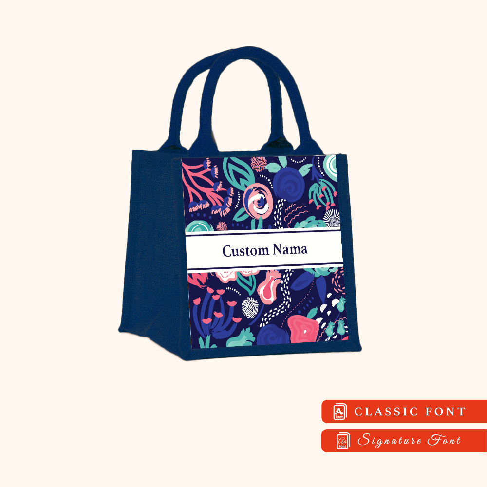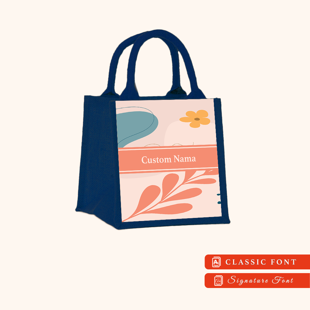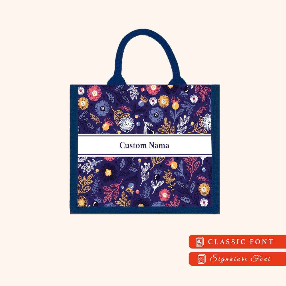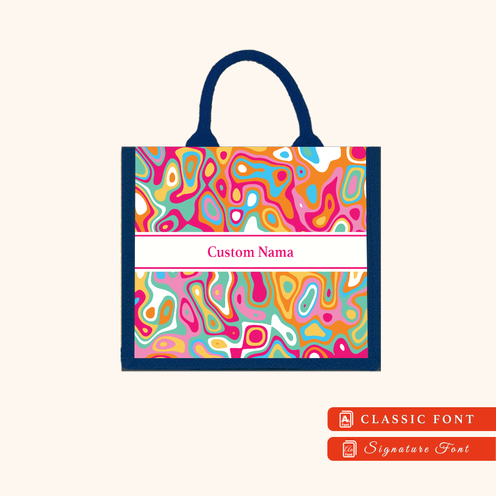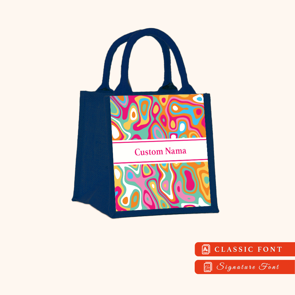 Abstract 01 Series Navy Blue Jute Tote Bag + FREE Custom Nama