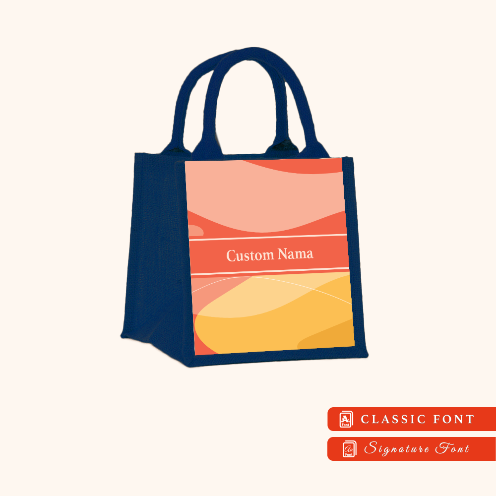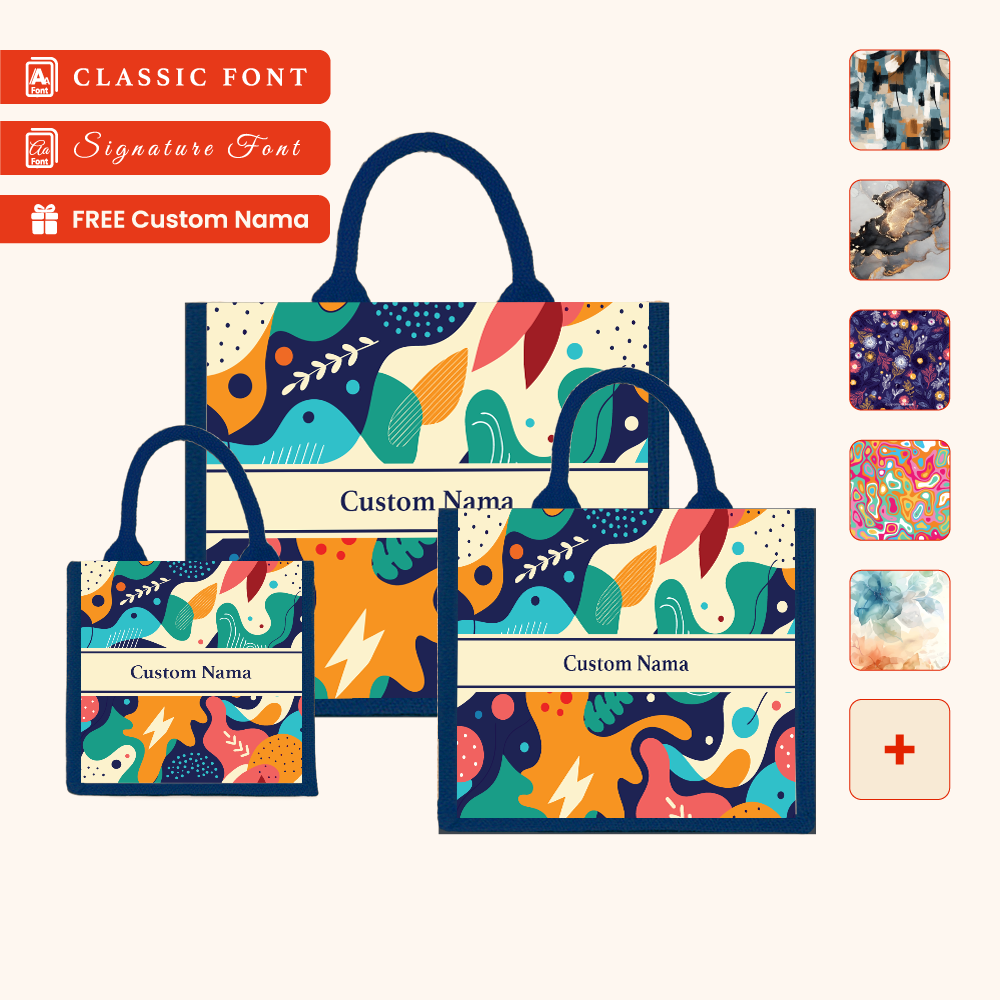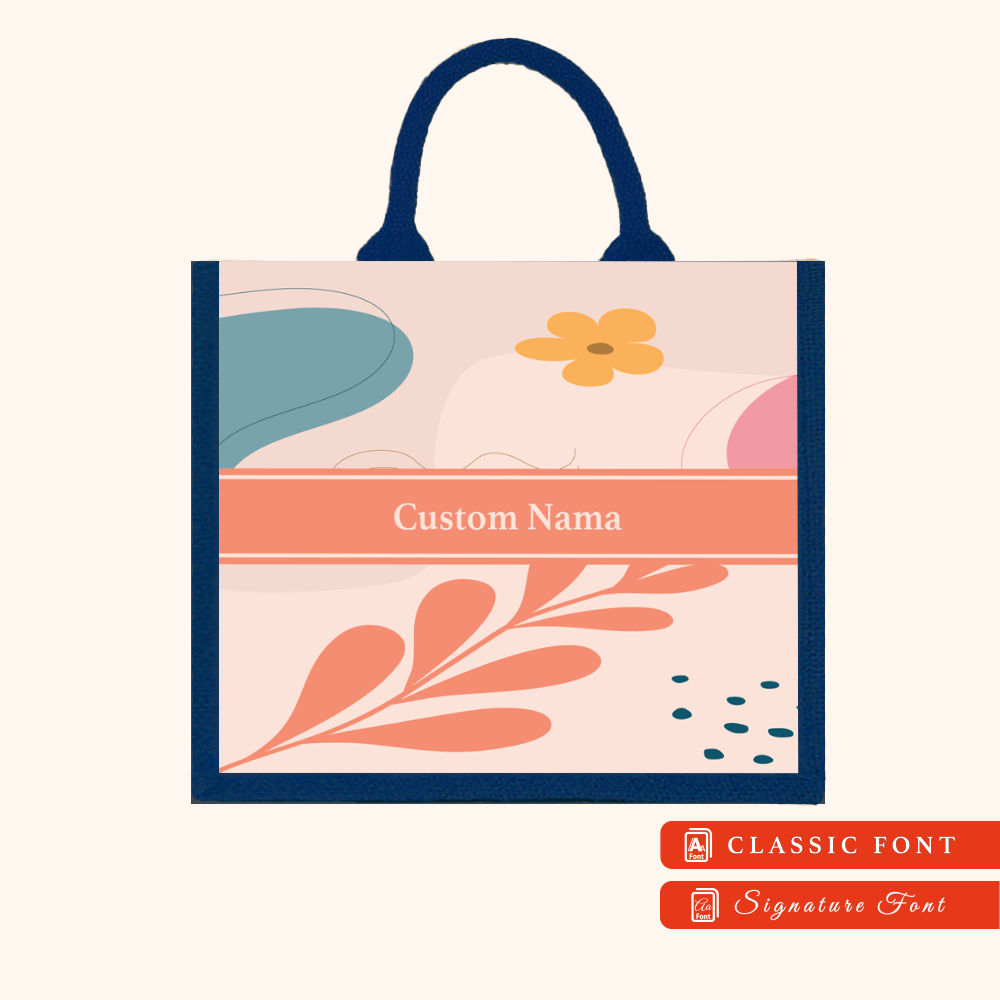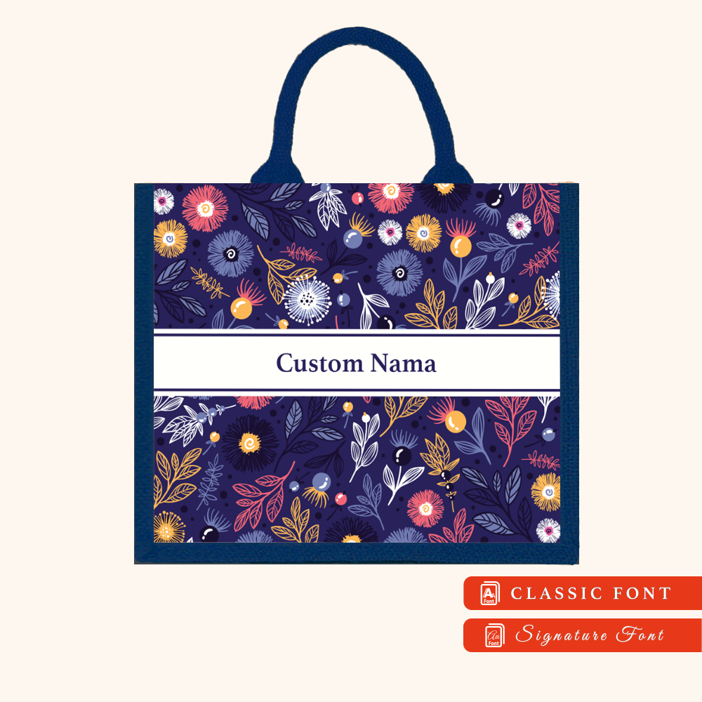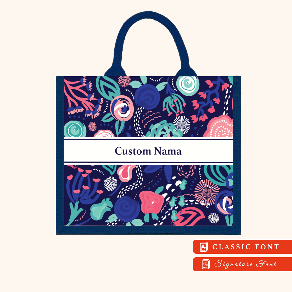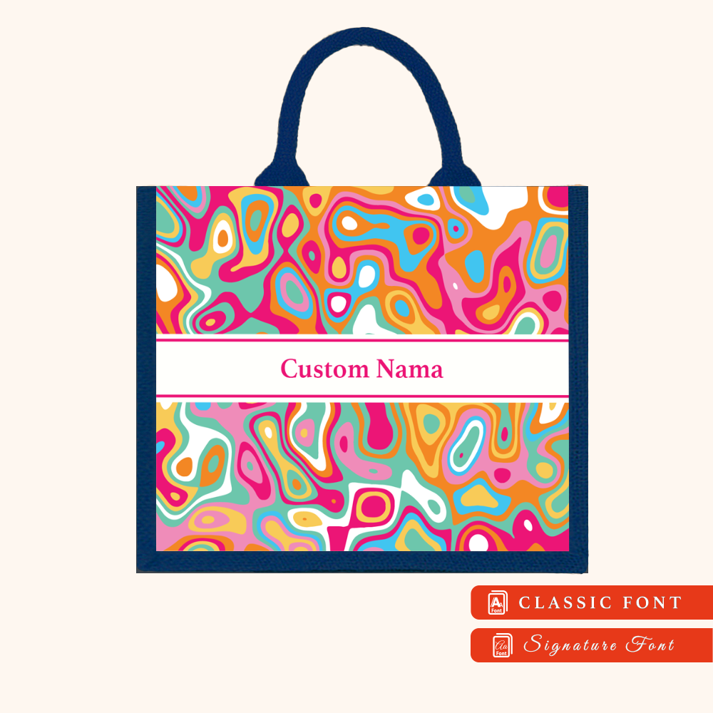 Abstract 01 Series Navy Blue Jute Tote Bag + FREE Custom Nama