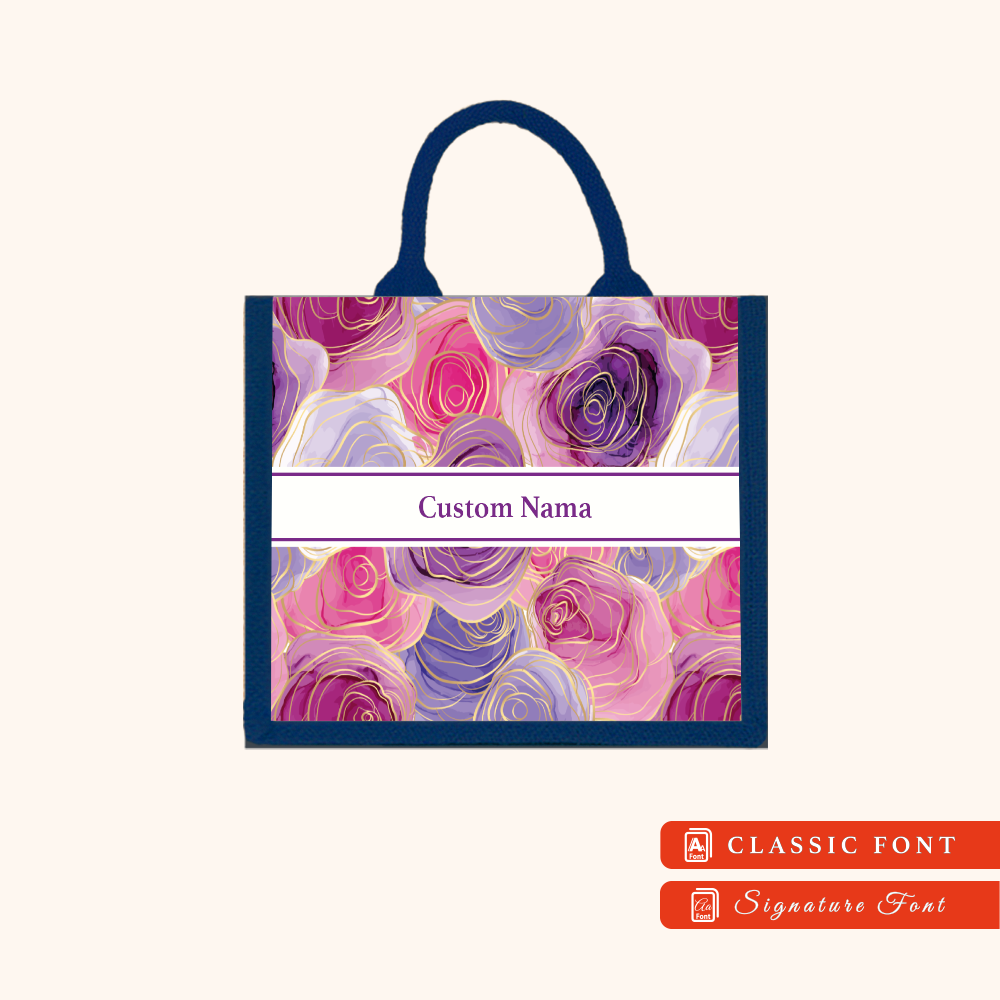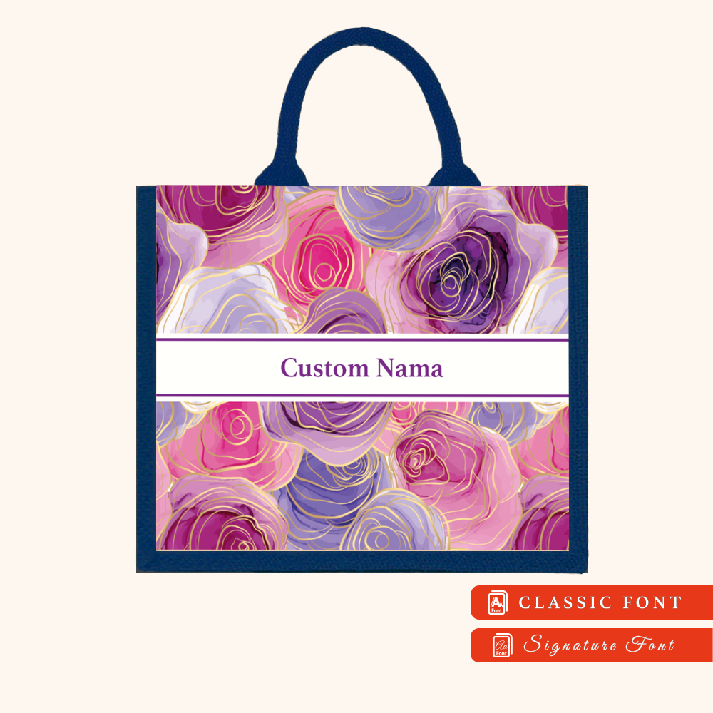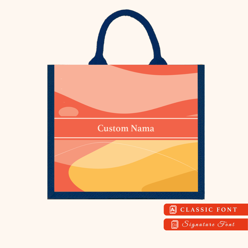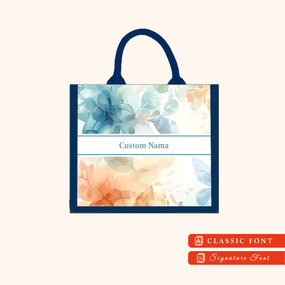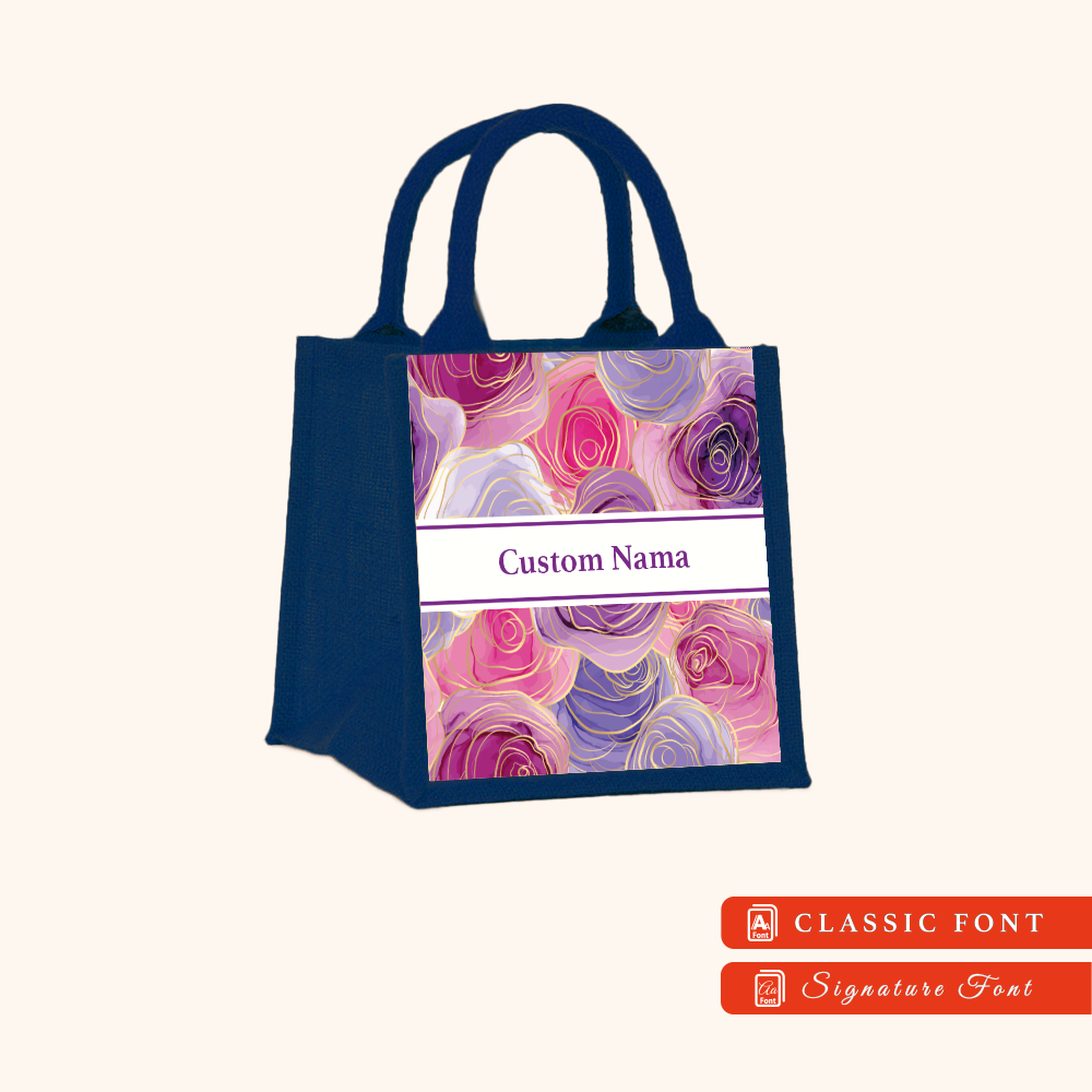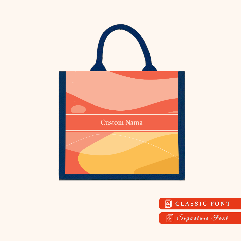 Abstract 01 Series Navy Blue Jute Tote Bag + FREE Custom Nama