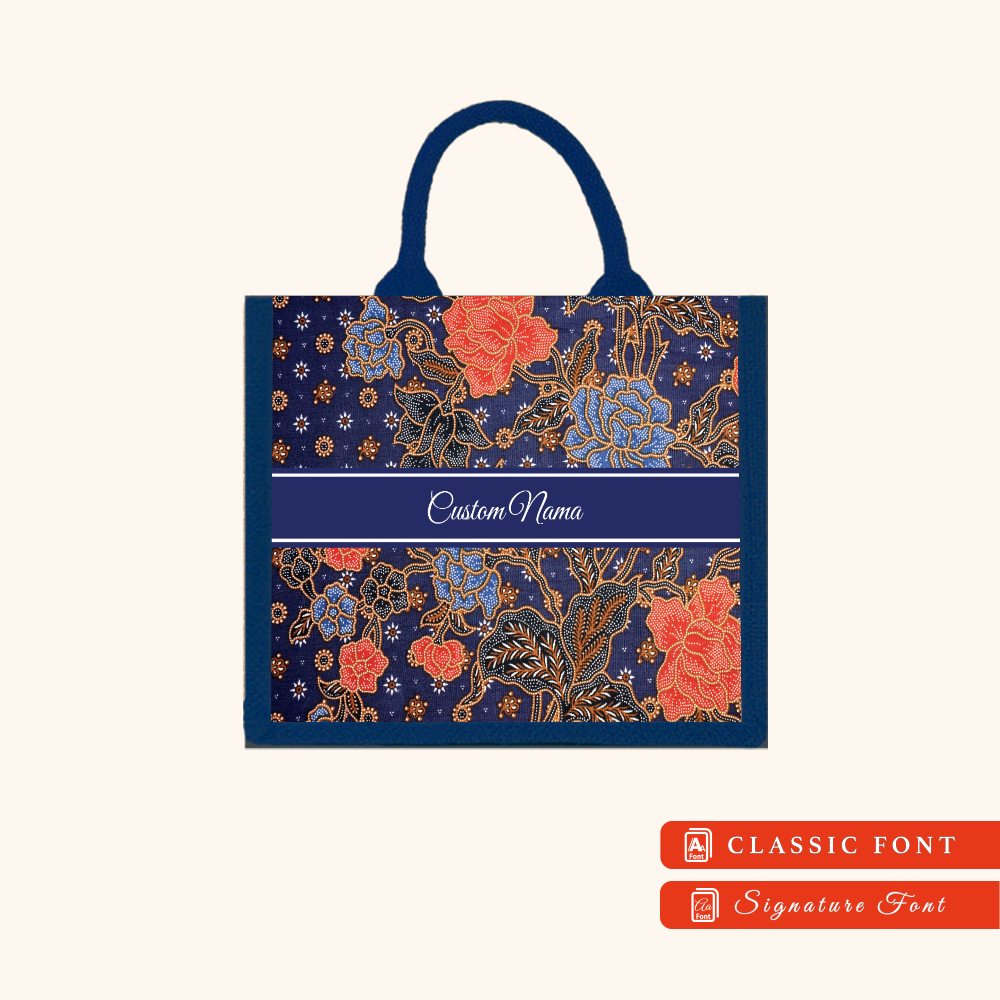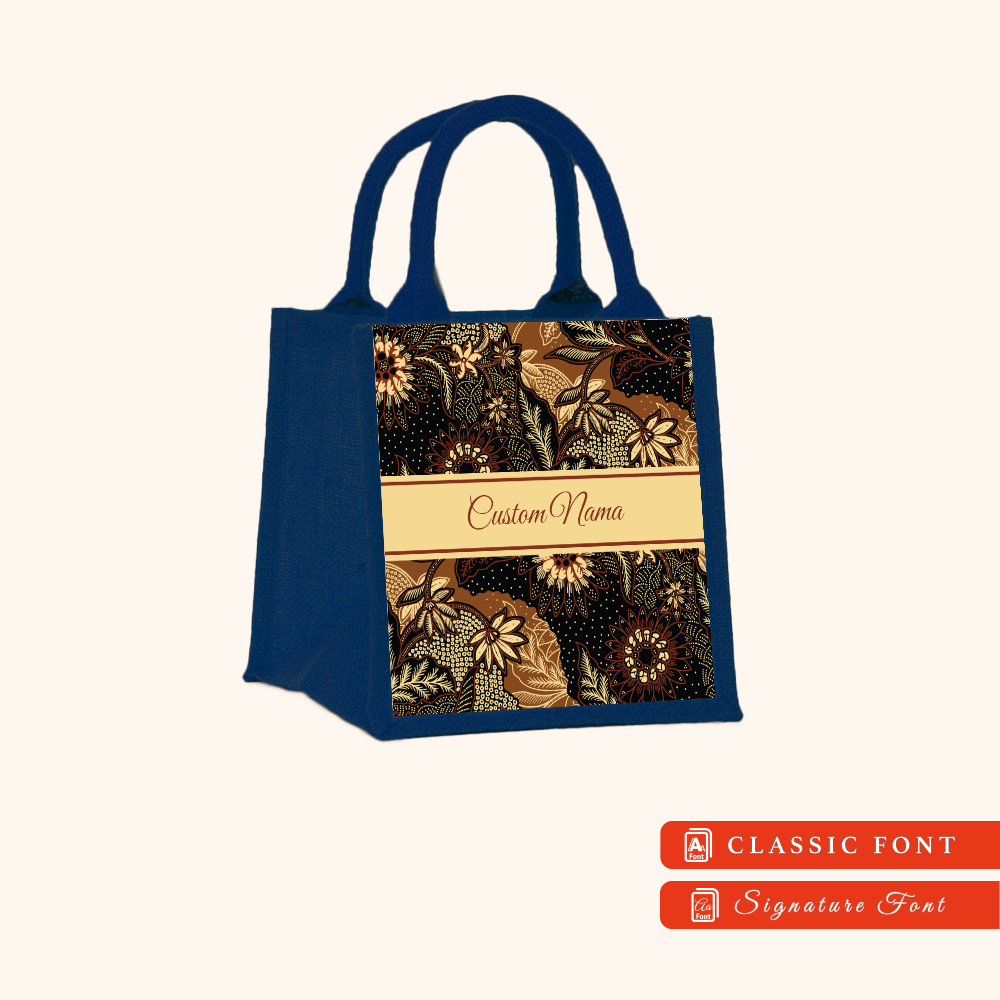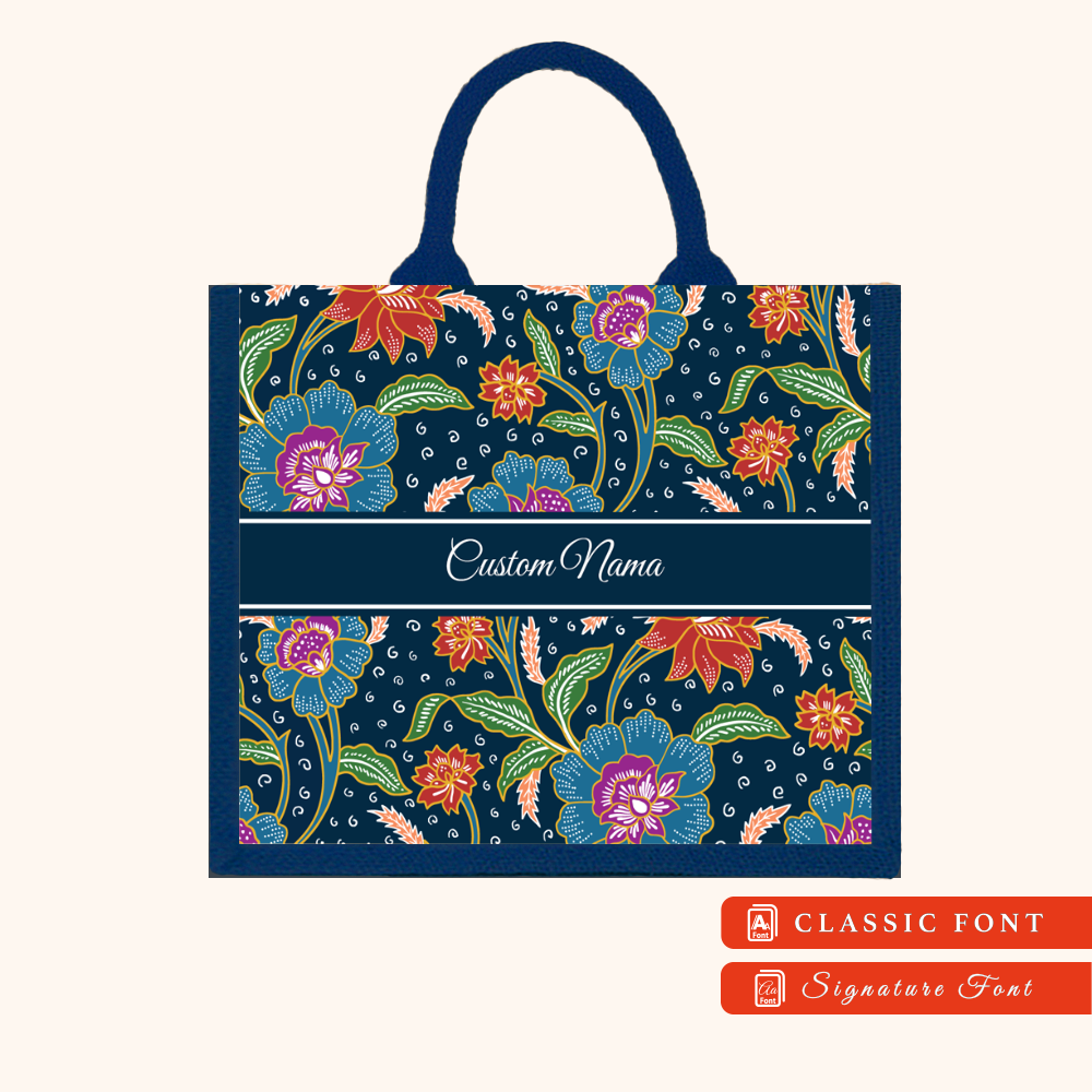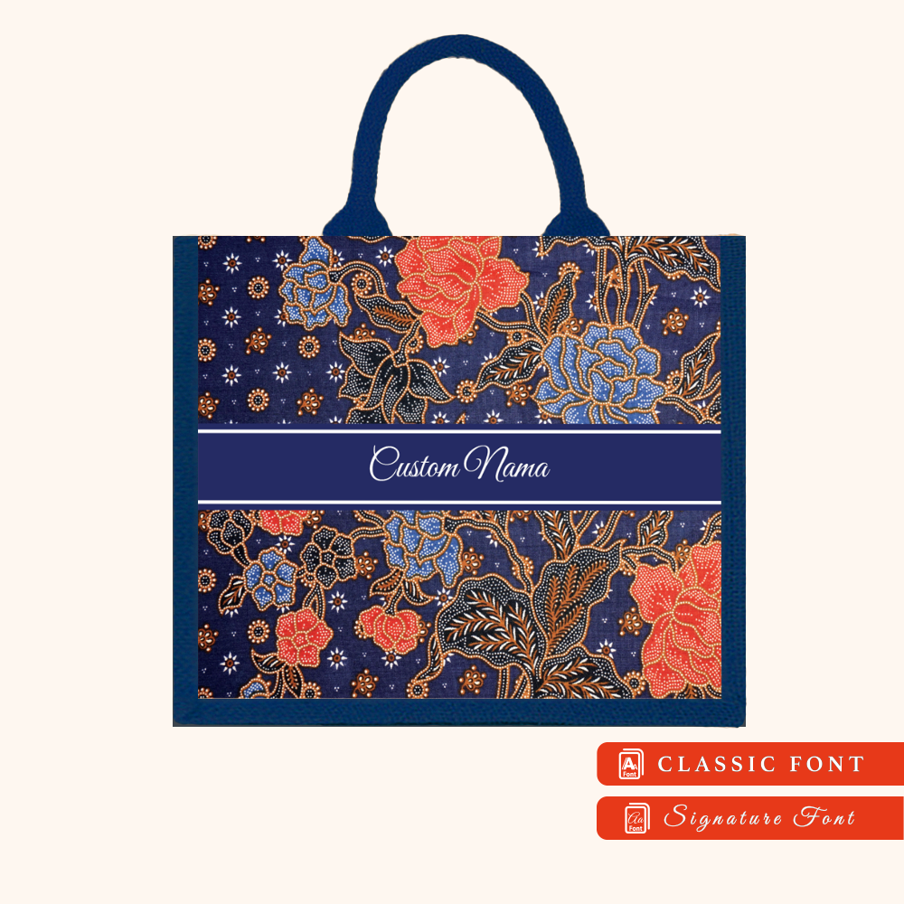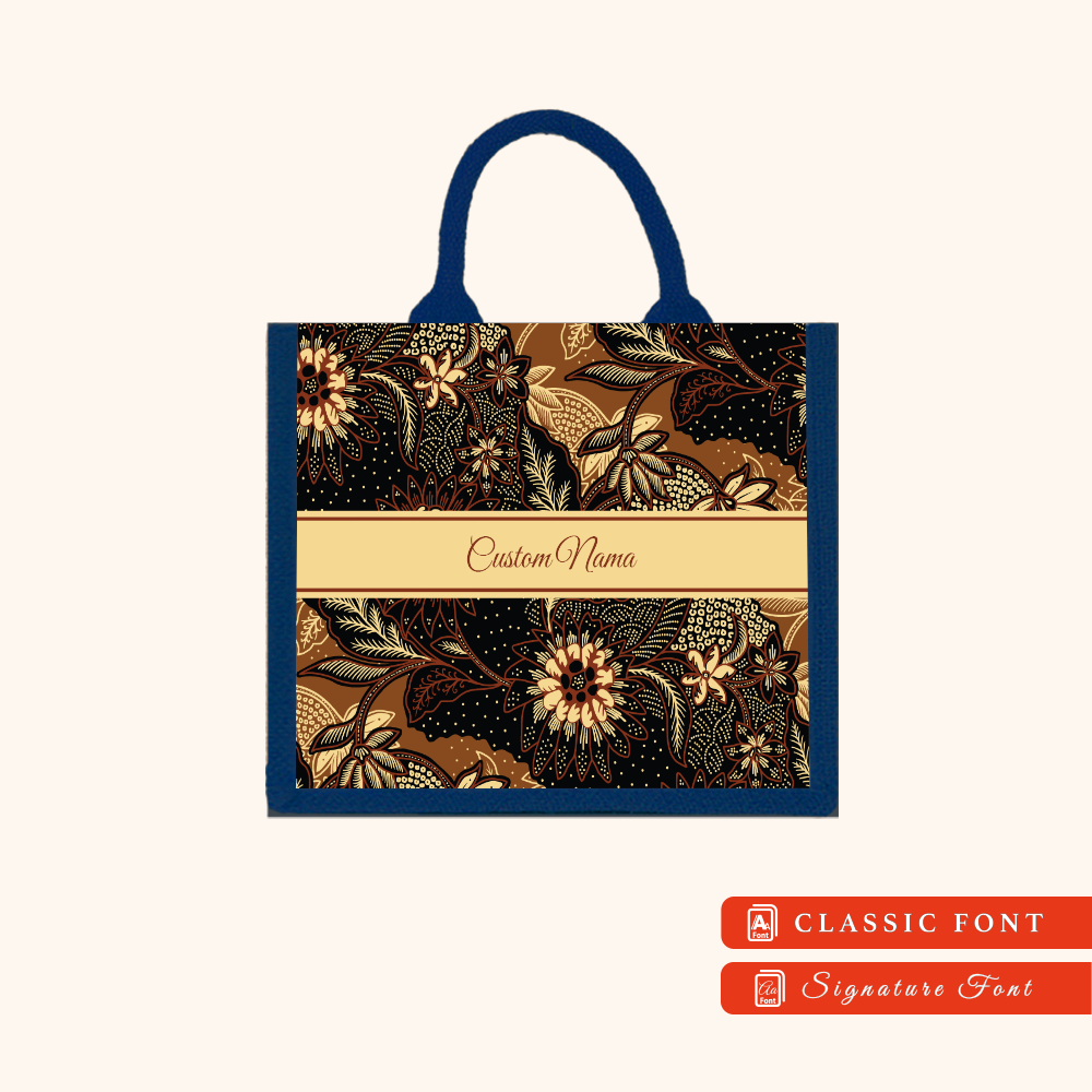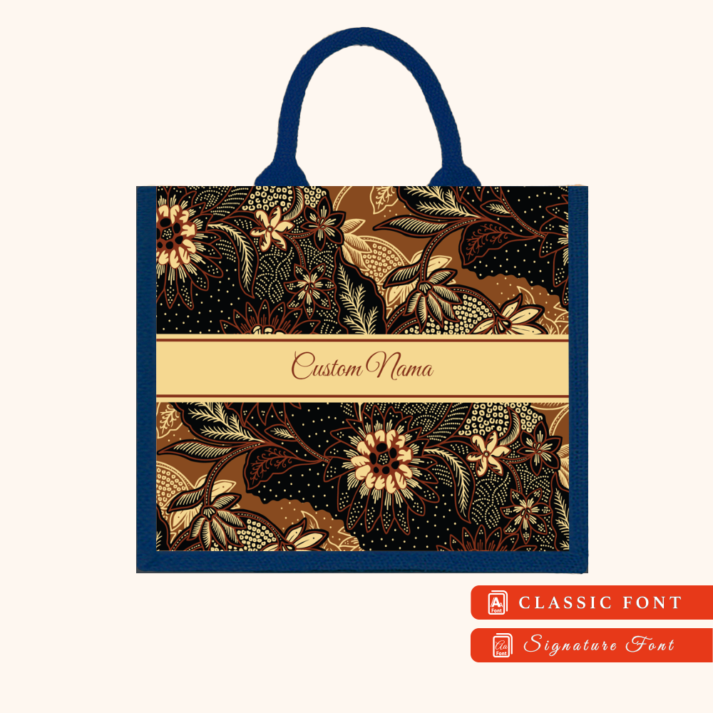 Batik 01 Series Navy Blue Jute Tote Bag + FREE Custom Nama