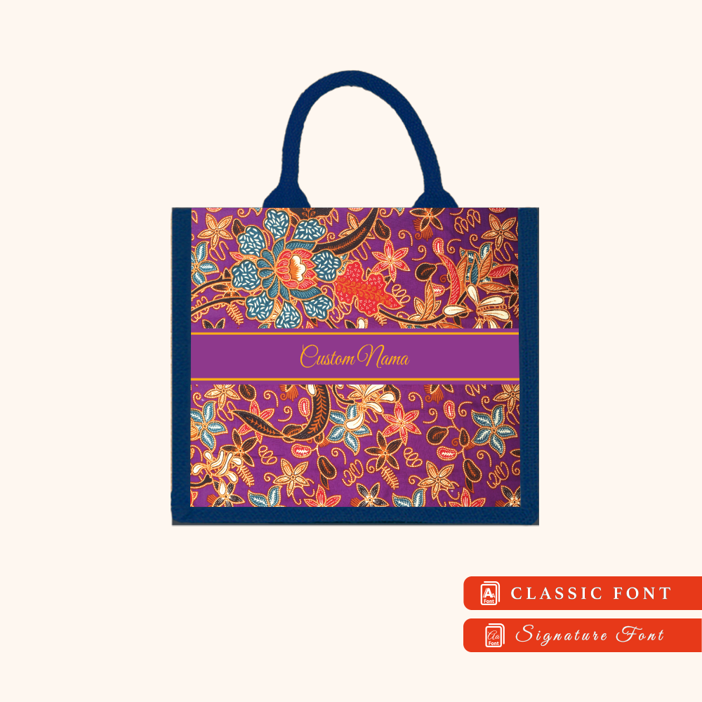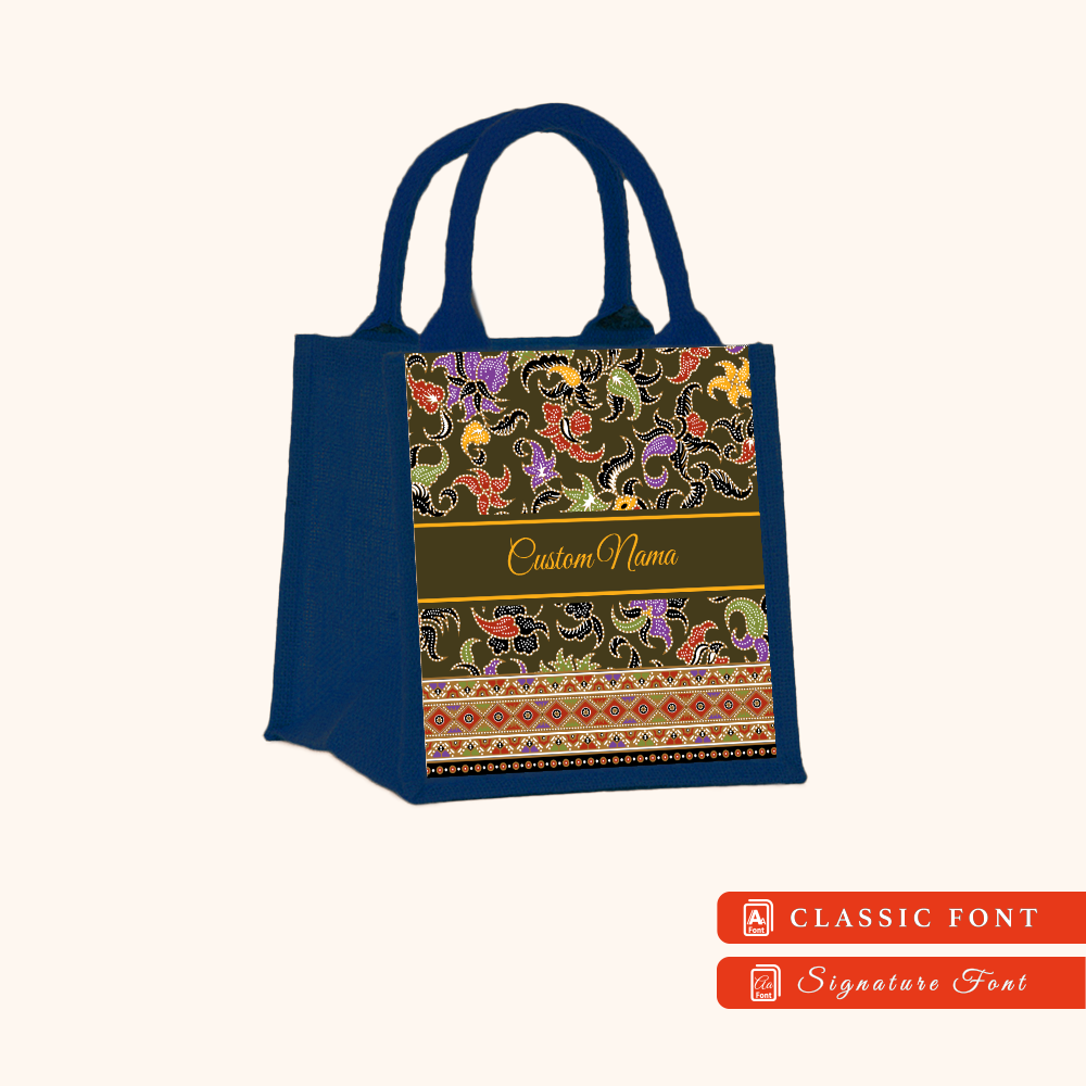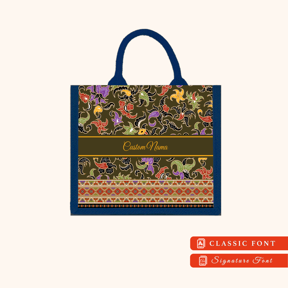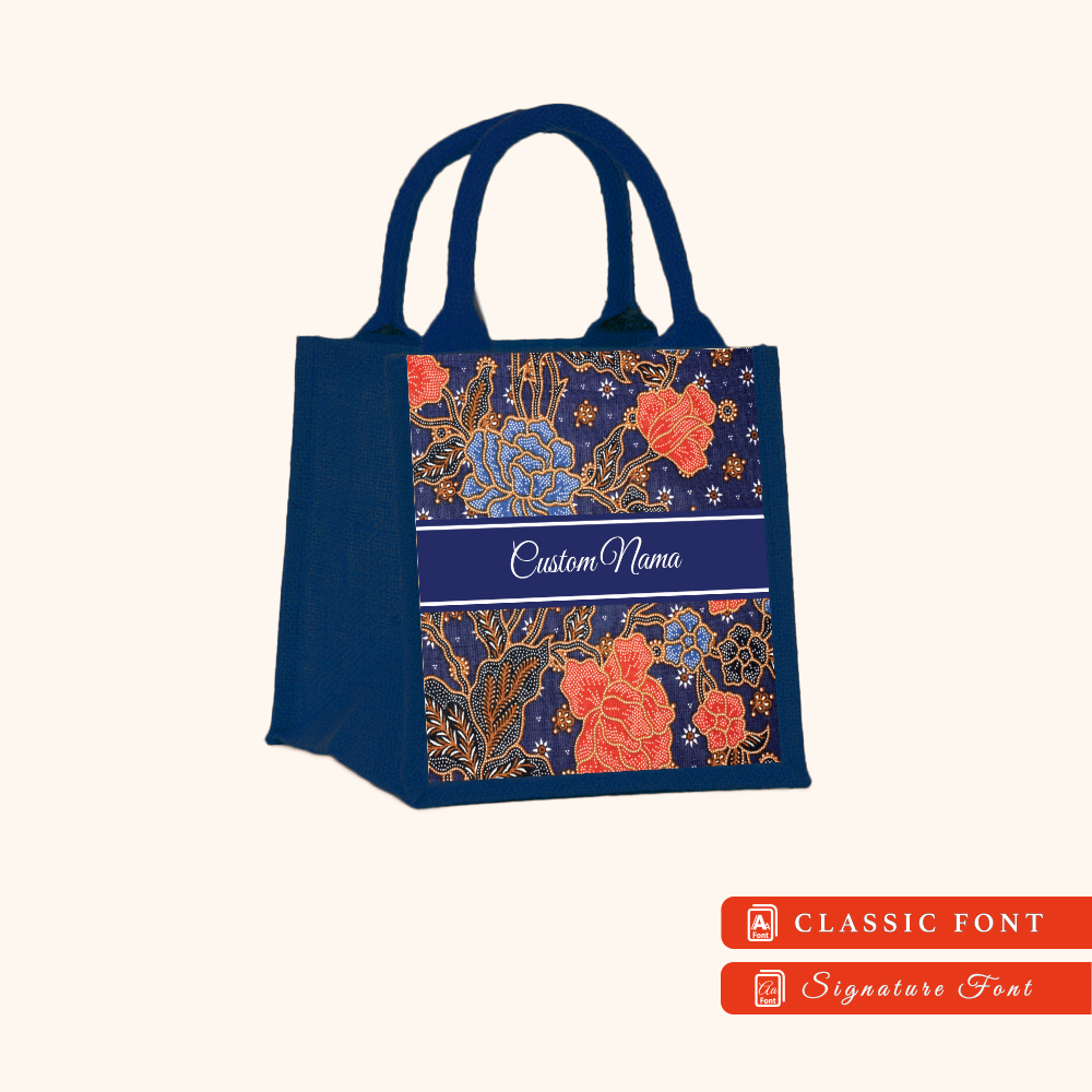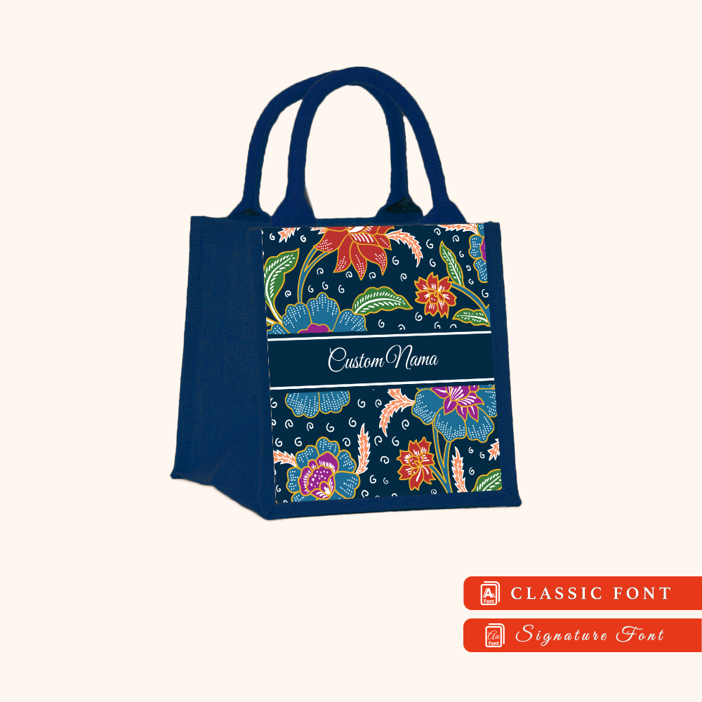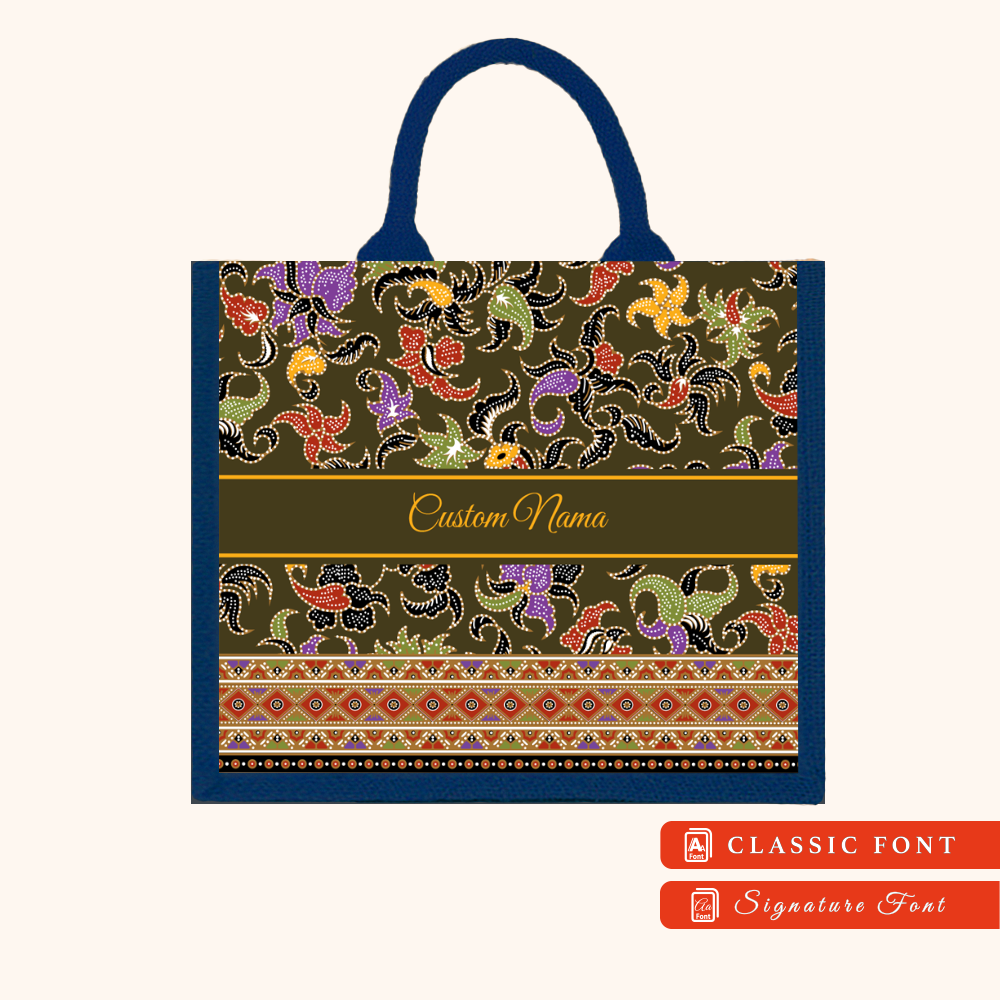 Batik 01 Series Navy Blue Jute Tote Bag + FREE Custom Nama