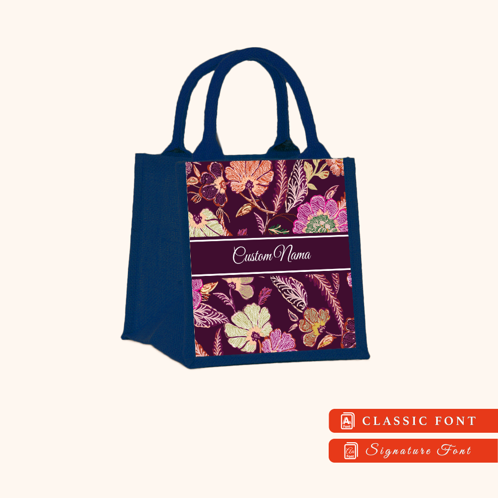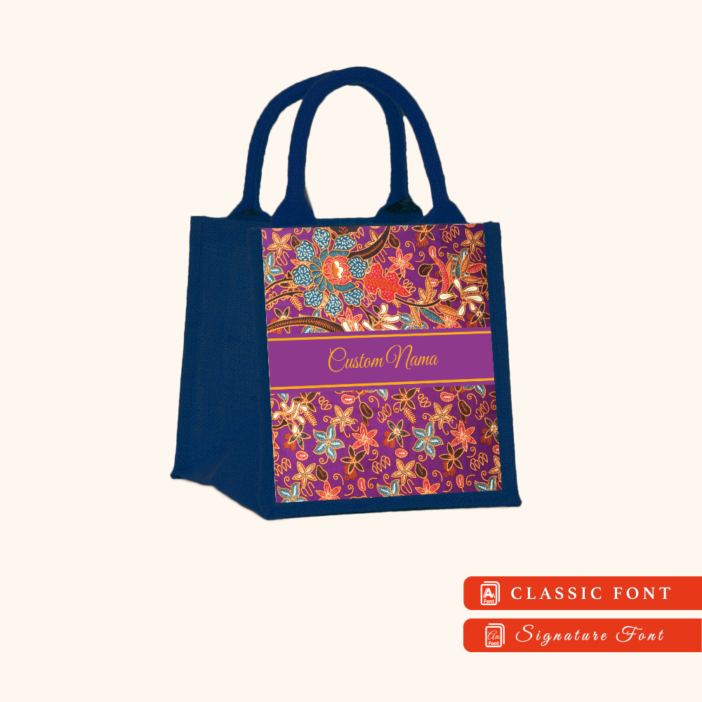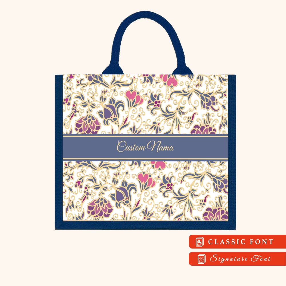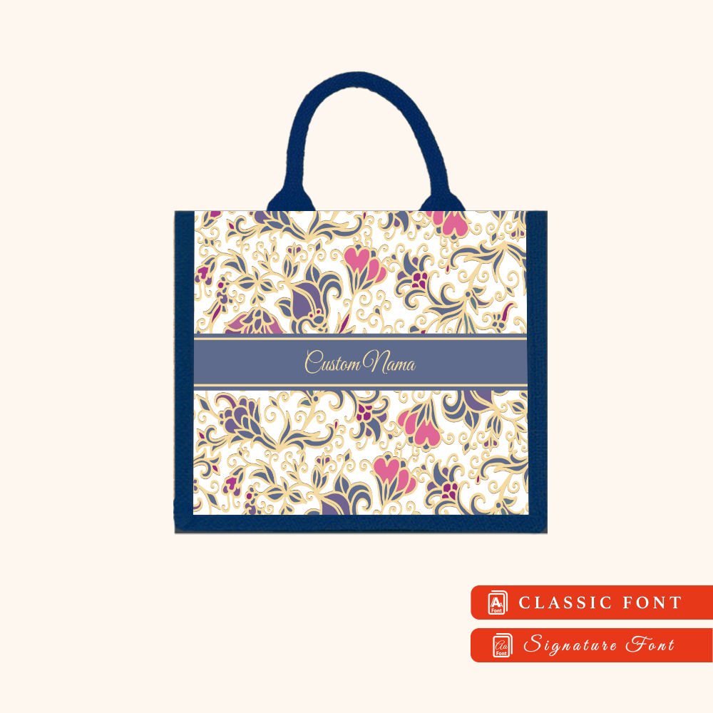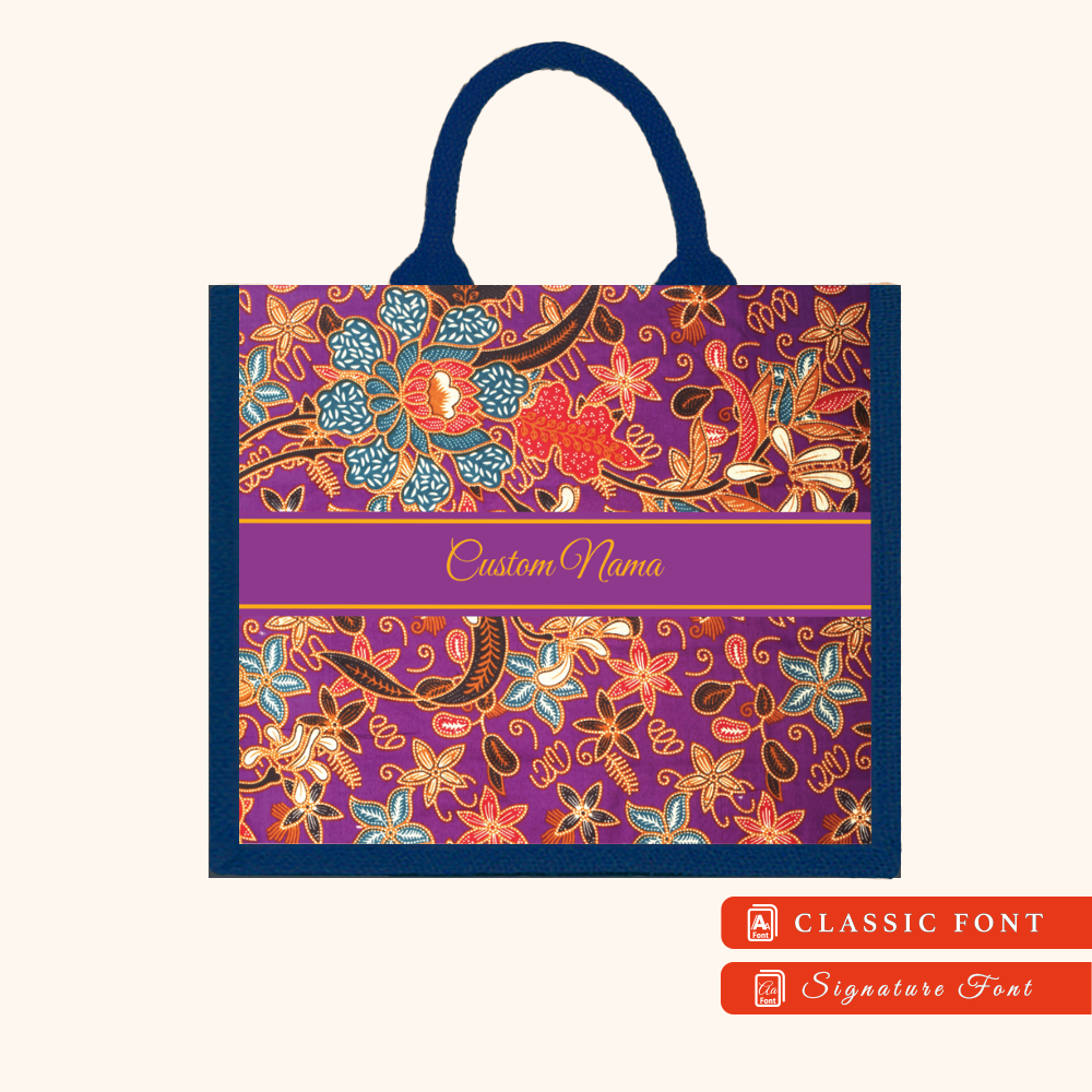 Batik 01 Series Navy Blue Jute Tote Bag + FREE Custom Nama