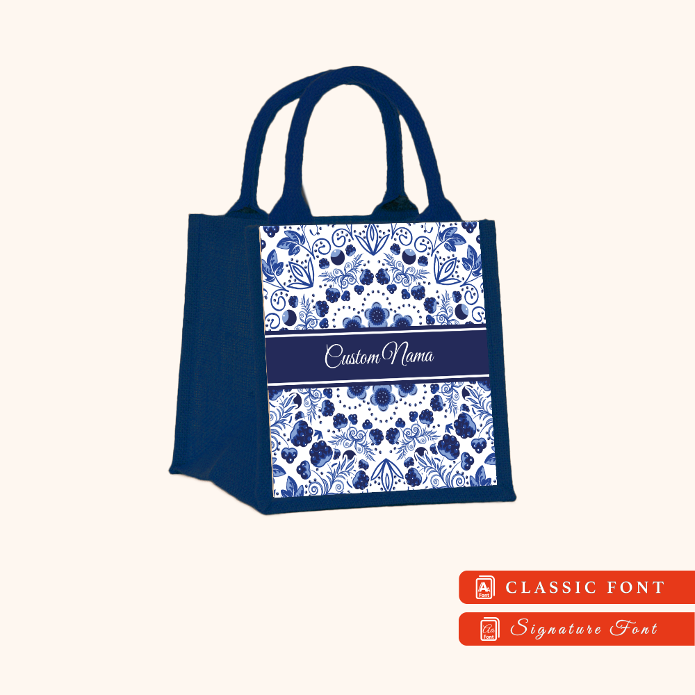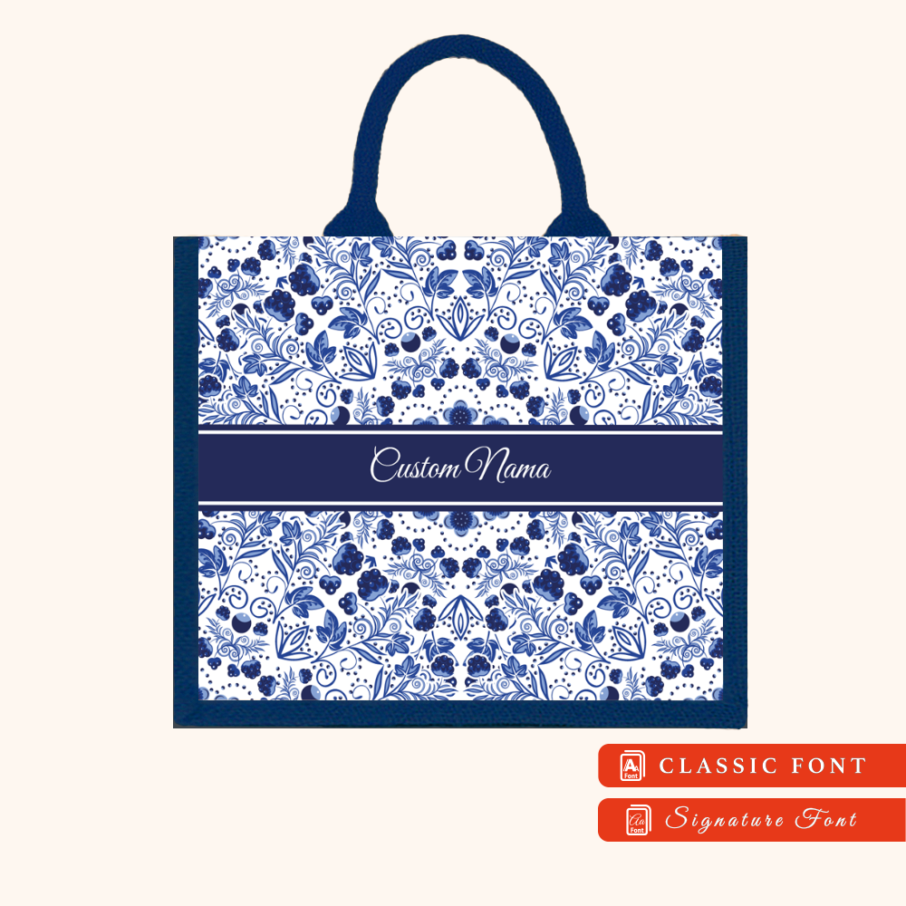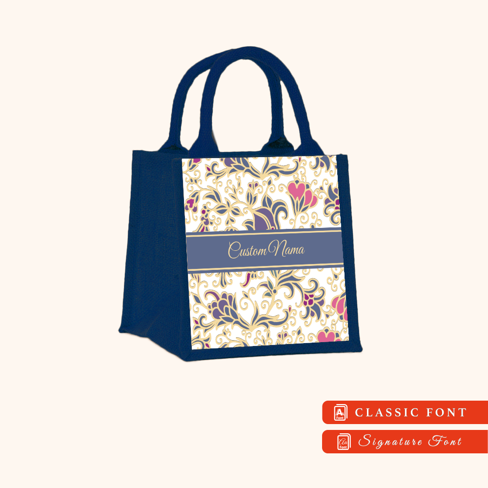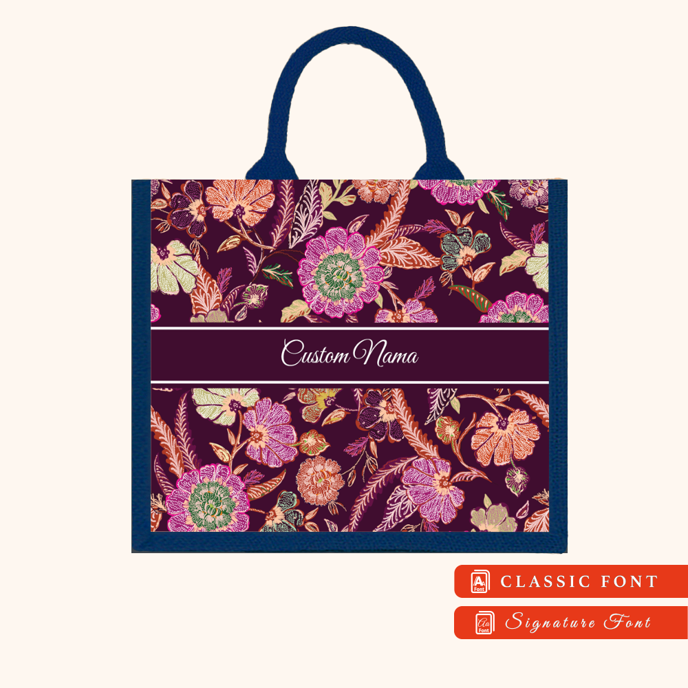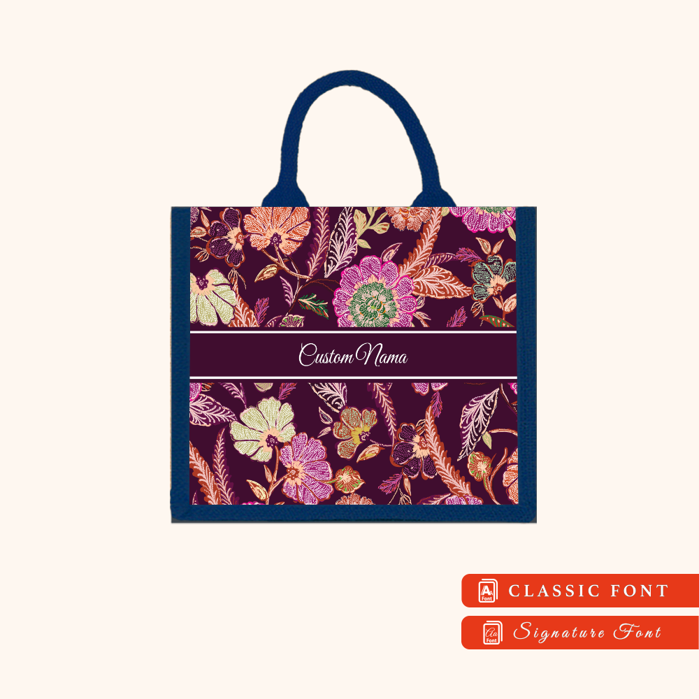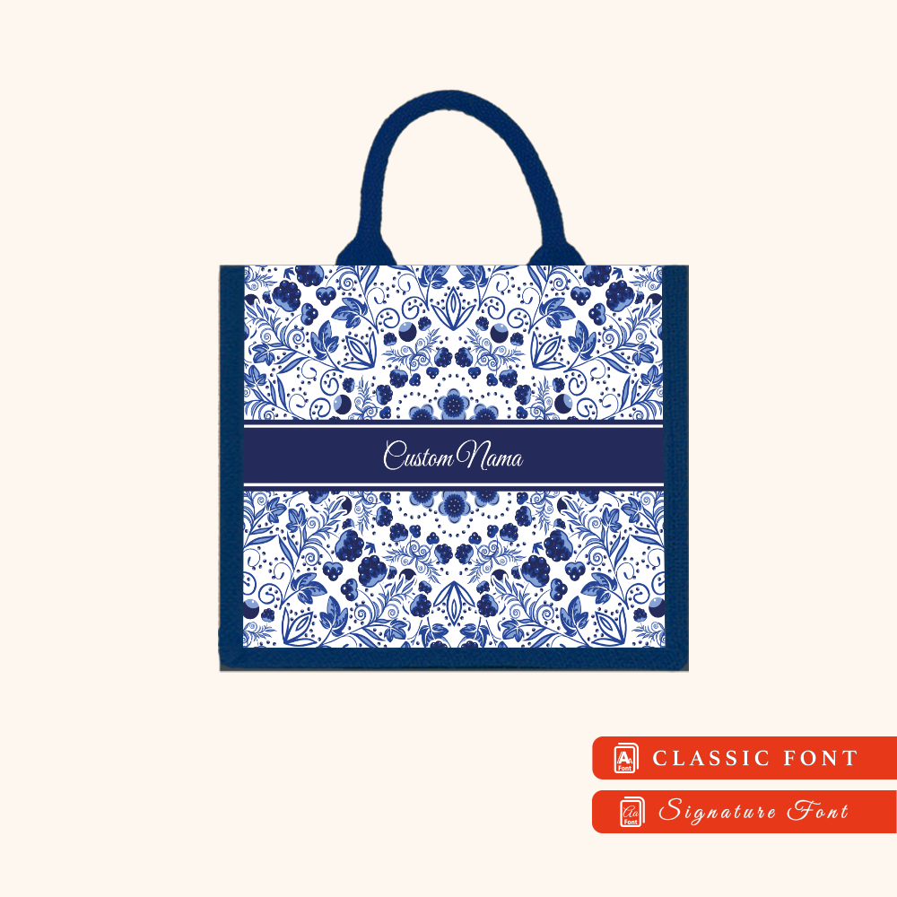 Batik 01 Series Navy Blue Jute Tote Bag + FREE Custom Nama