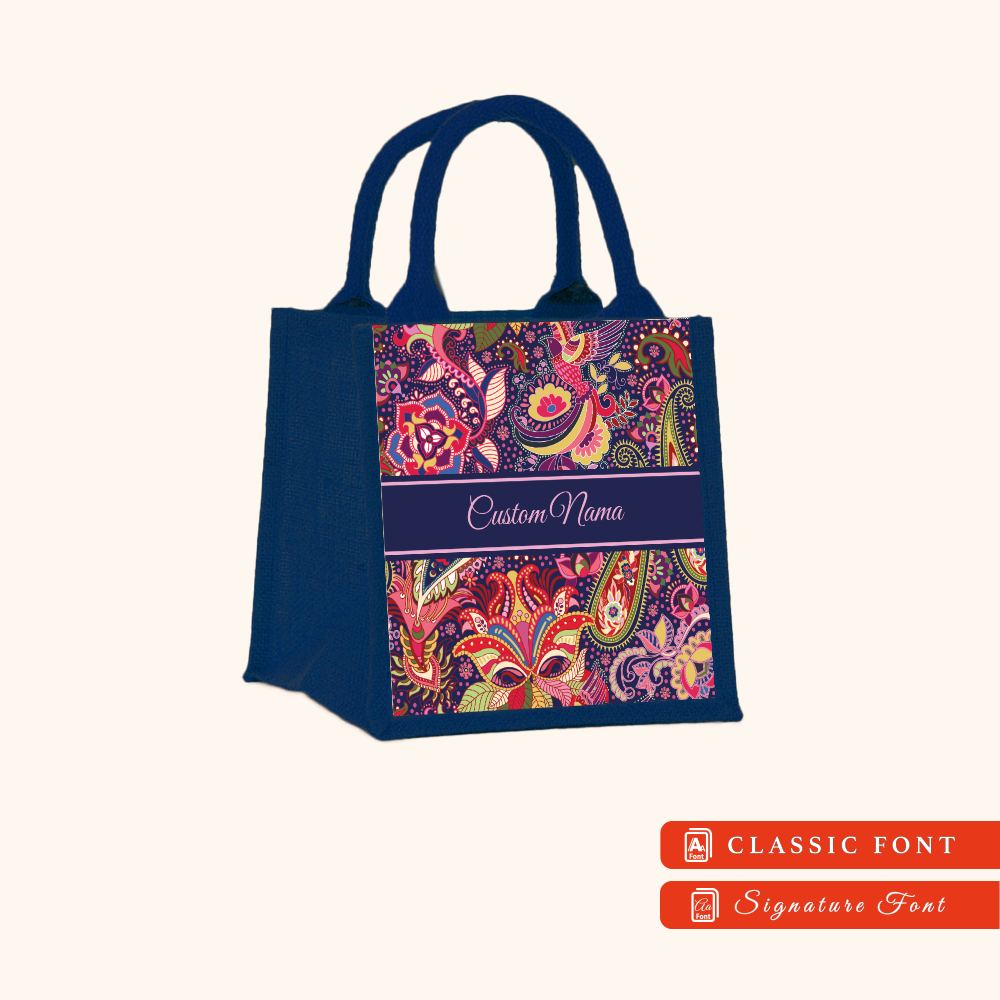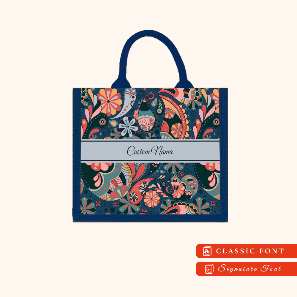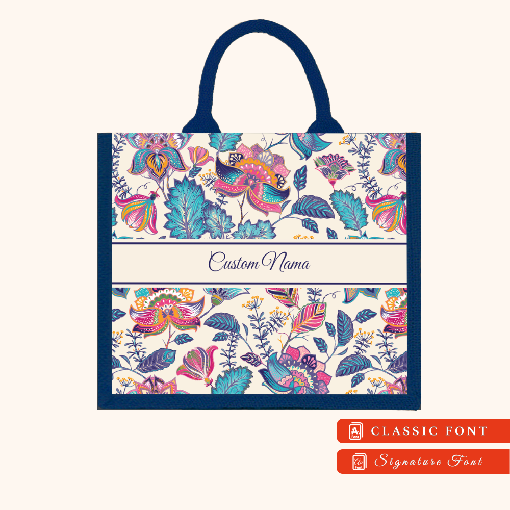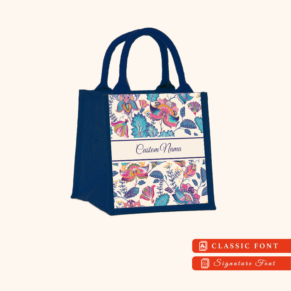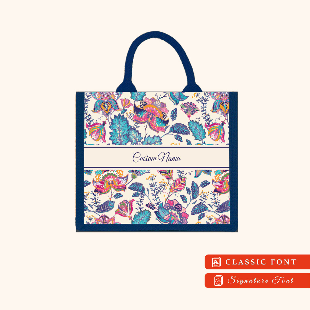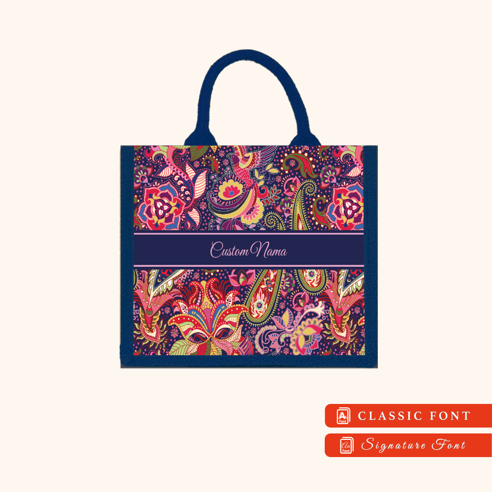 Batik 01 Series Navy Blue Jute Tote Bag + FREE Custom Nama