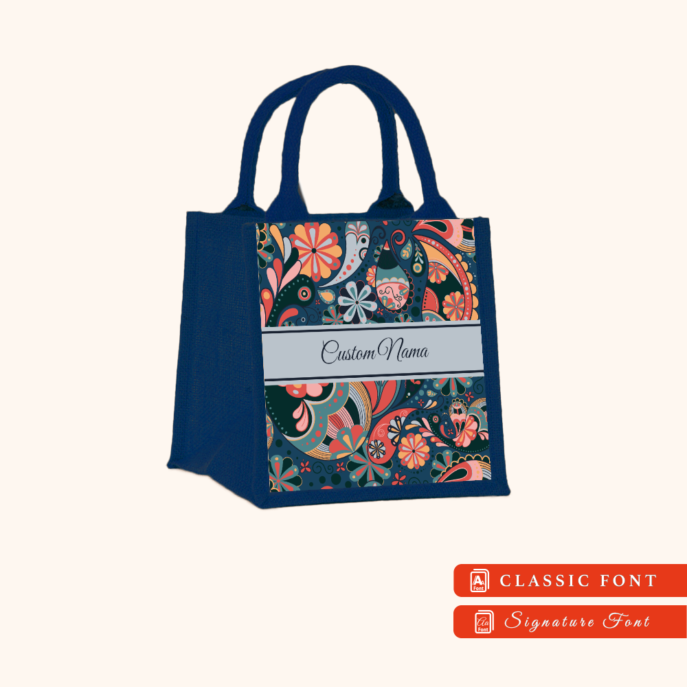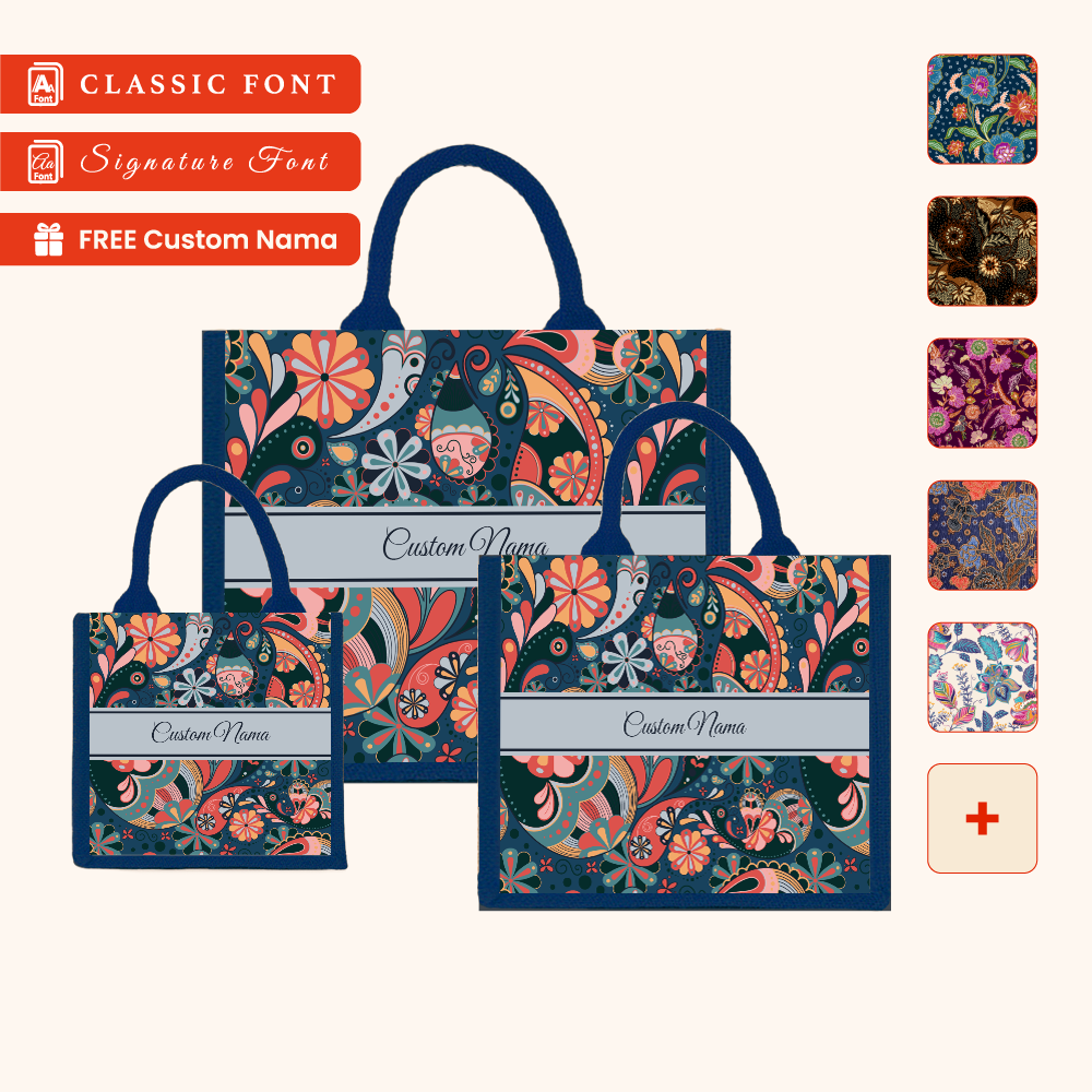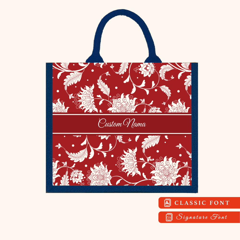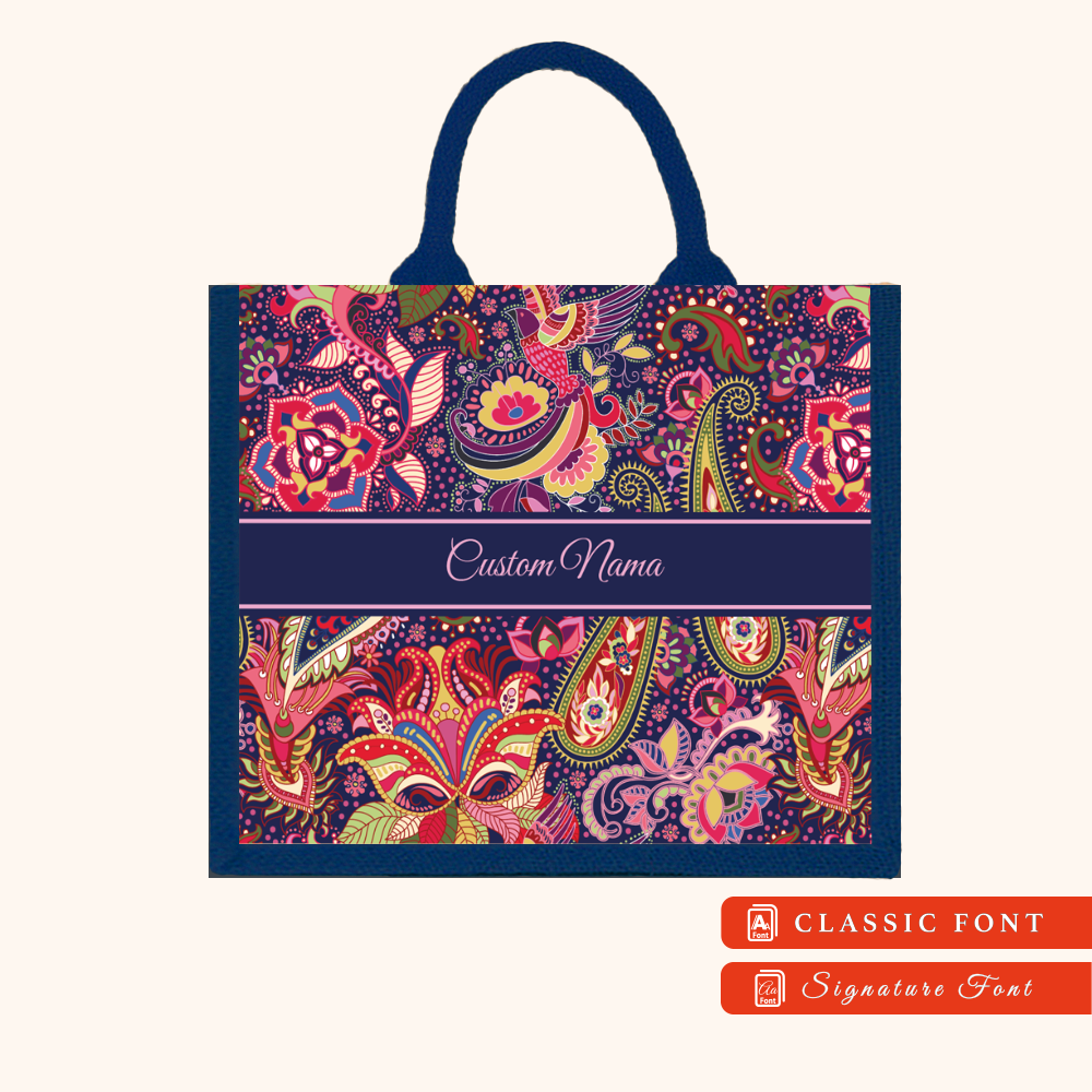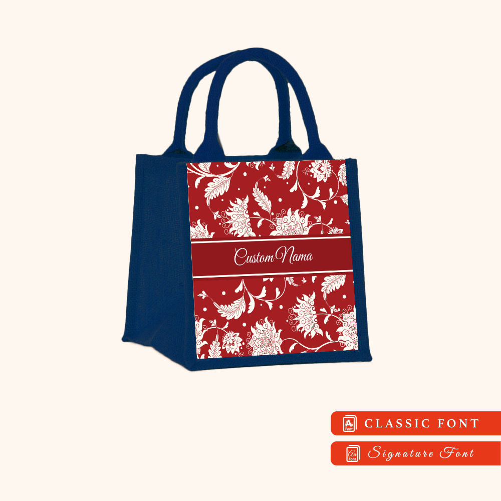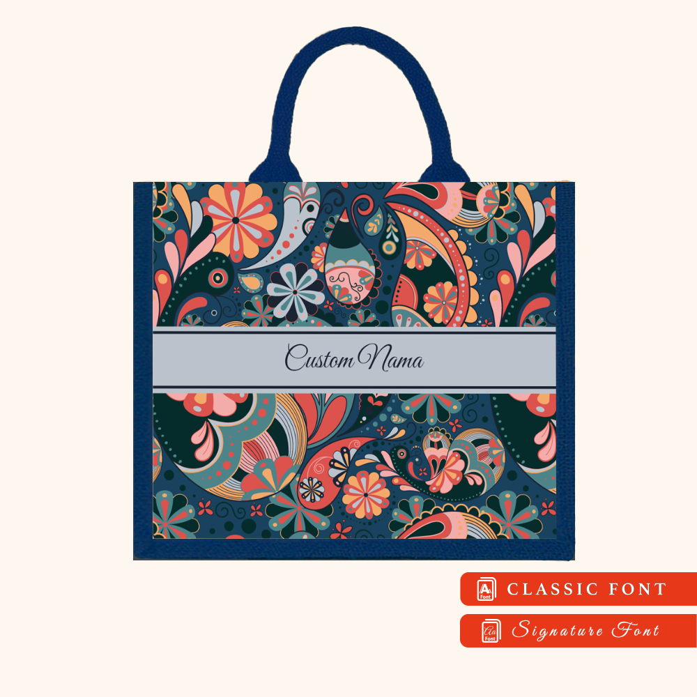Batik 01 Series Navy Blue Jute Tote Bag + FREE Custom Nama
