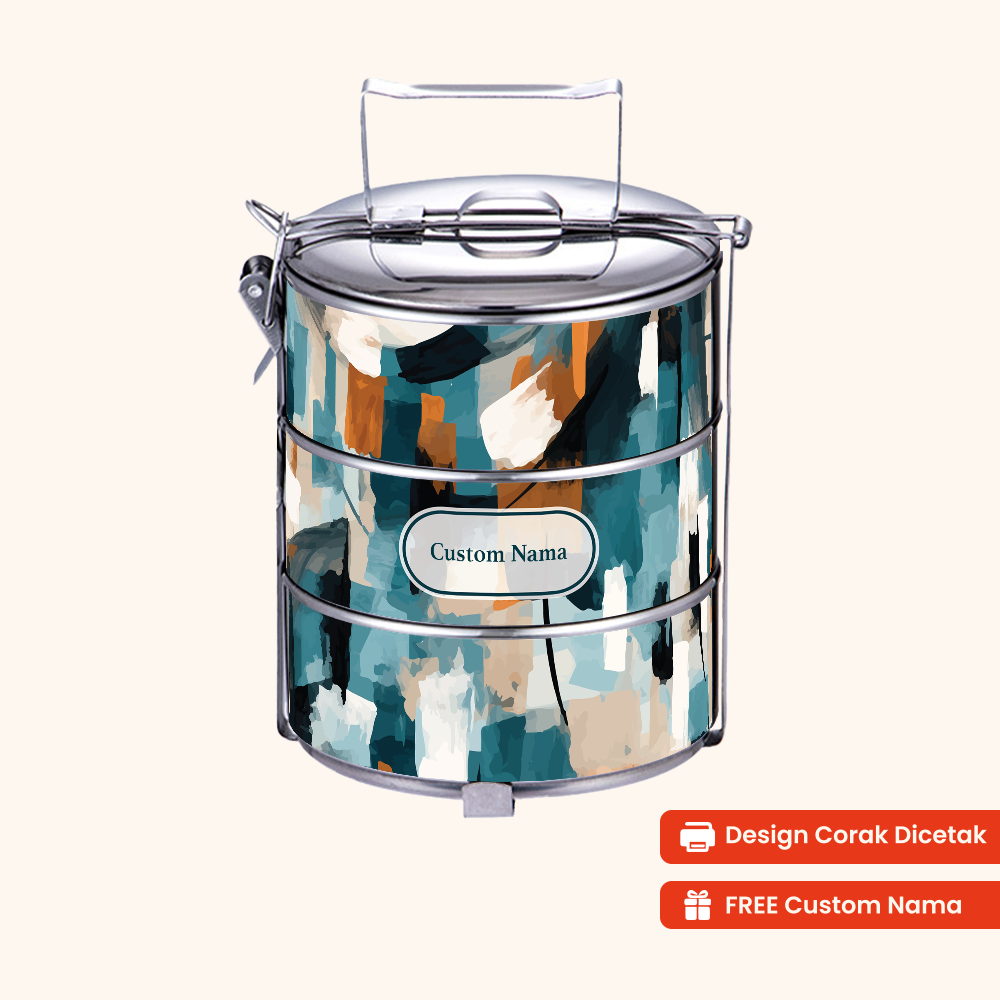 Corak Dicetak Terus (Not Sticker) — 14cm 3-Tier Abstract 01 Tiffin Carrier + FREE Custom Nama